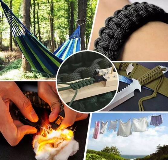 - ↔ paracord paracord можно использовать в качестве кабеля, оплетки к ручке, например Свист благодаря тому, что мы сможем назвать Help и для выпечки, , который, при необходимости, будет служить маленьким лезвием ,