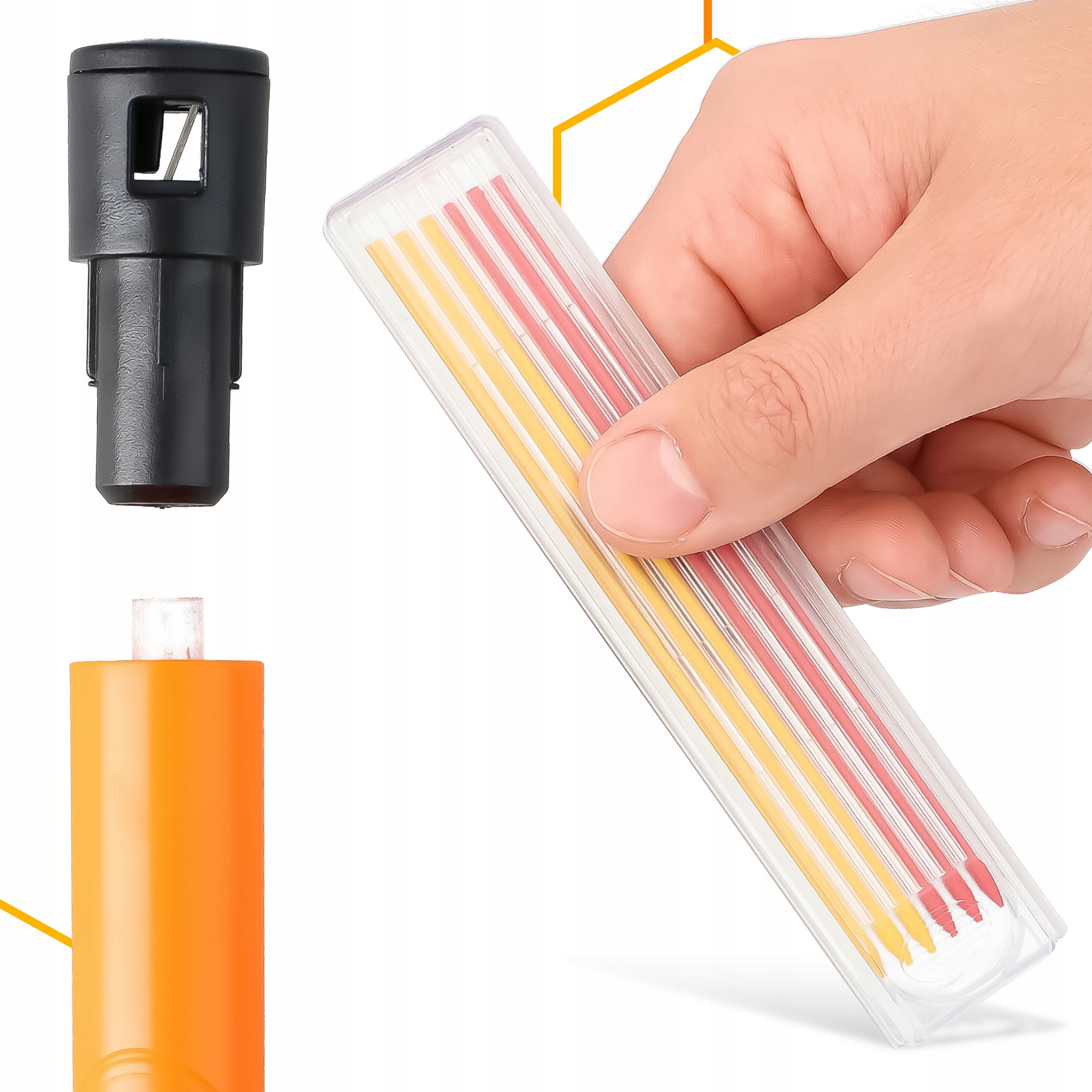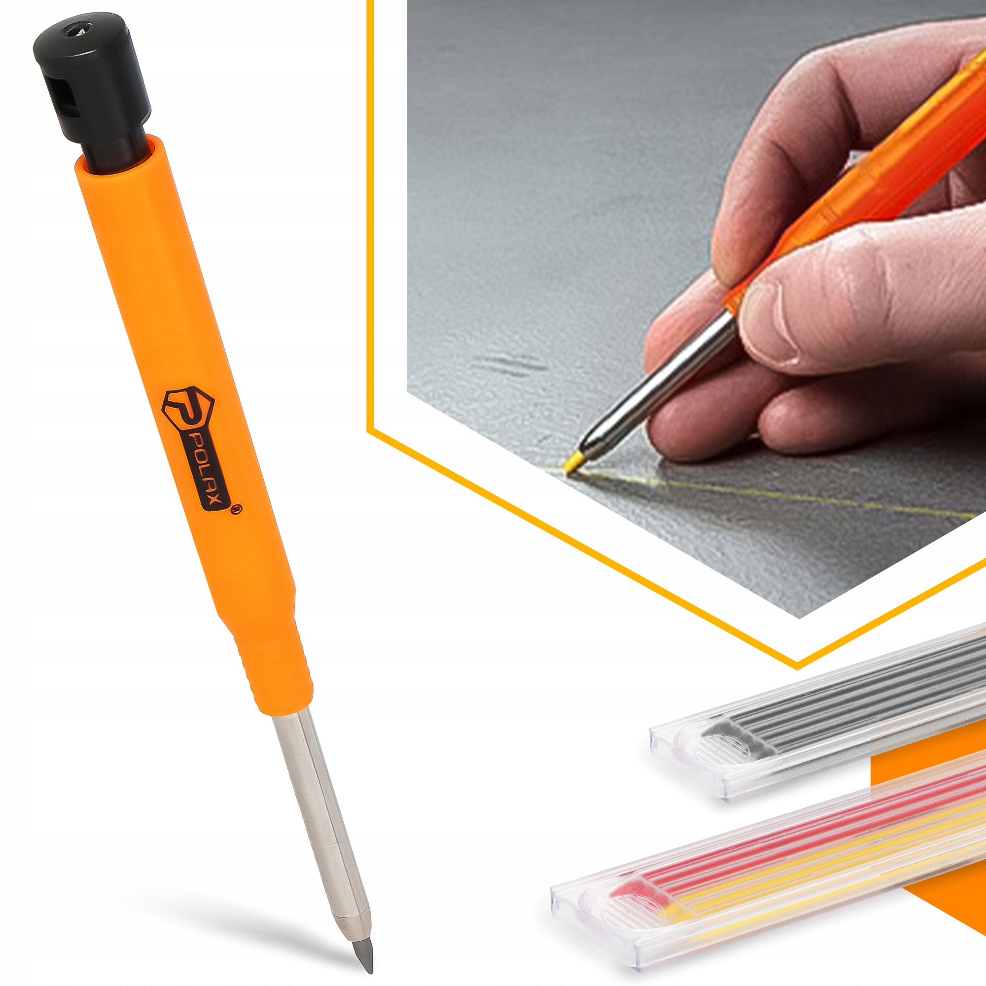 Автоматический строительный карандаш подойдет везде, где важна скорость и точность разметки. Легкая и прочная конструкция хорошо лежит в руке, а удобный механизм выталкивания вставки позволяет работать без перерывов. Благодаря своей форме карандаш помещается в кармане или прикрепляется к одежде. Всегда готов к действию, независимо от места и условий.
