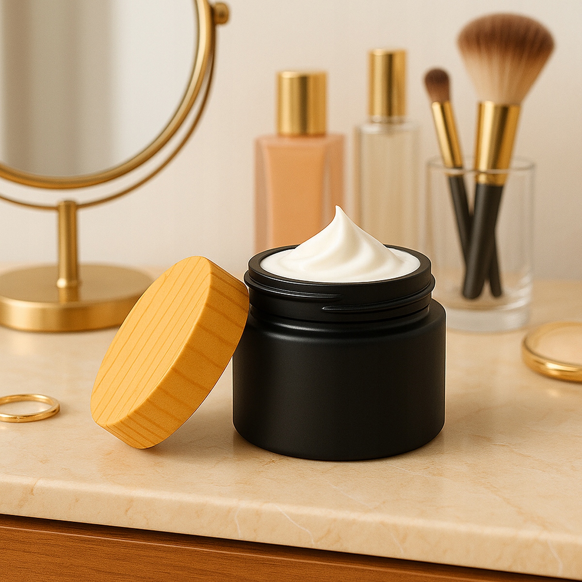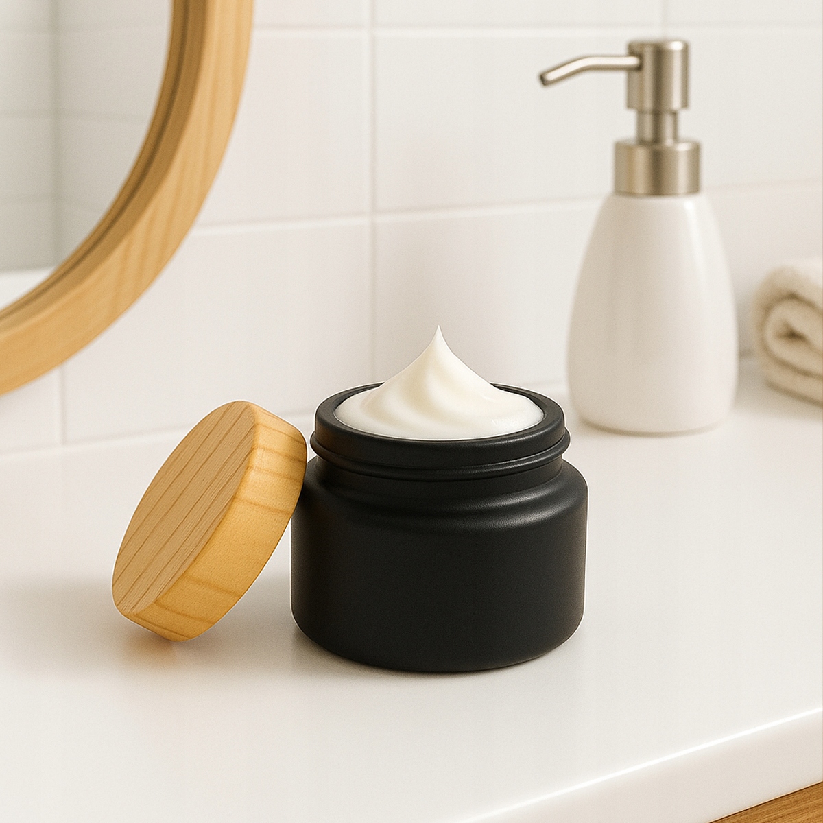 ✅ минималистская банка в черной матовой отделке с имитирующей деревянной крышкой является идеальным сочетанием элегантности и природы. Отличный выбор для тех, кто заботится не только о контенте, но и на упаковке.