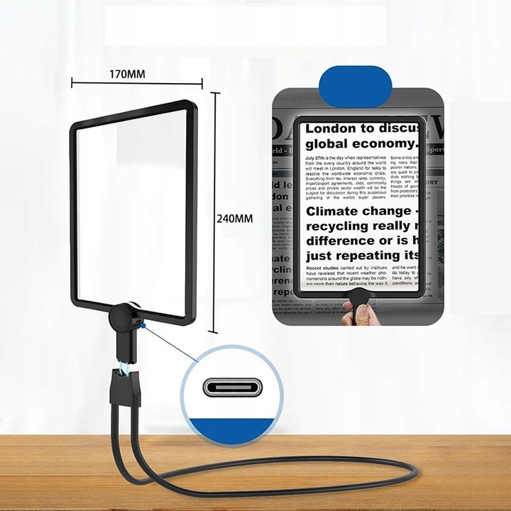 Очень большое, чистое поле зрения 5x: Lupa имеет поле зрения 25,7 x 18,7 см / 10,1 x 7,4 дюйма. Больший размер и лучшее зрение, чем в случае с журналом Neck, доступным на рынке. Вы можете наблюдать за большей площадью, не перемещая увеличительное стекло. Это может увеличиться до 500% без искажений.