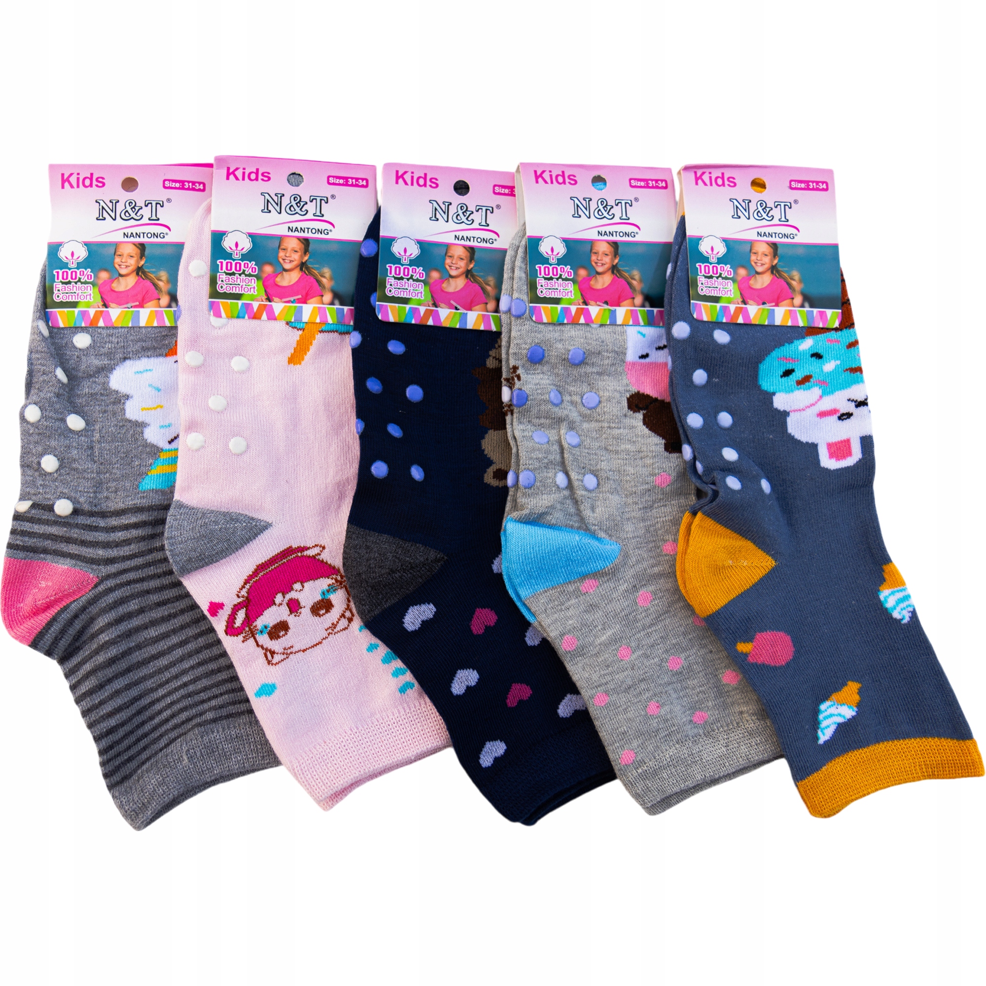 5x ДИТЯЧІ БАВОВНЯНІ ШКАПЕТКИ ПРОТИКЛИЗКІ, ABS, КОЛЬОРОВІ, 27-30