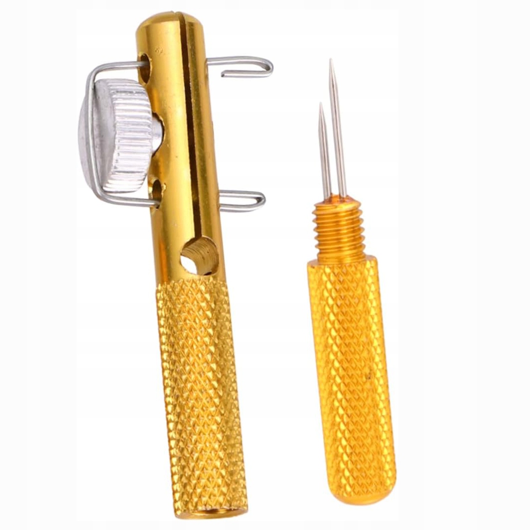 Инструмент, который облегчает привязывание крючков к лопатке. Удобный, простой в использовании, изготовлен из дюралюминия. Дополнительно две спицы (длиннее и короче) будут использоваться для быстрого провязывания ровных петель и крючков с ушком.