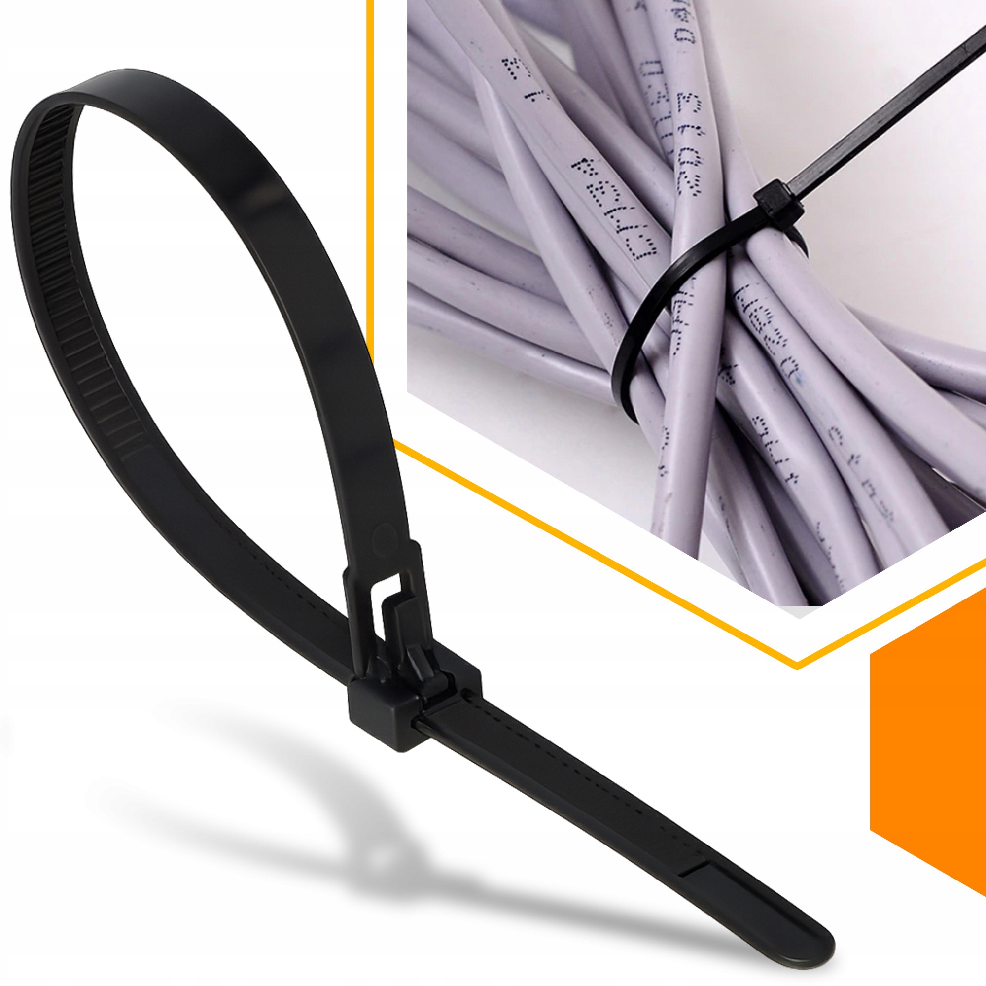 Изготовленный из прочного нейлона, он устойчив к высоким температурам и обладает электроизоляционной функцией. Он очень устойчив к растрескиванию и разрушению. Его самым большим преимуществом является возможность быстро открывать и повторно затягивать, что делает его удобной альтернативой одноразовым зажимам.