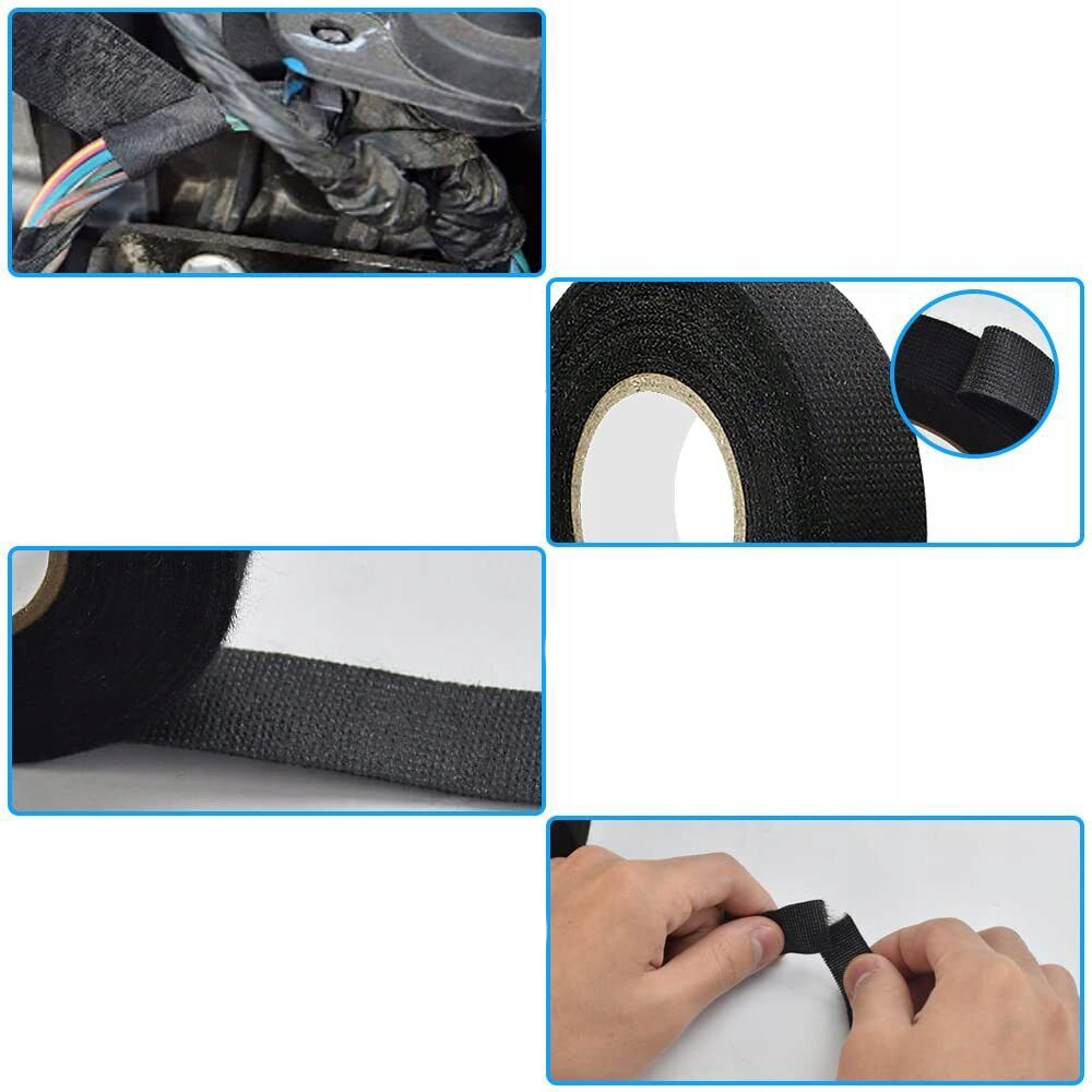 5X Кабельная клейкая лента 25м х 19мм черная автомобильная