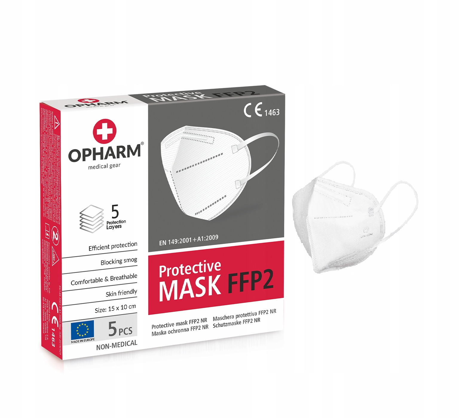 гарантирует большую защиту от вредных частиц и вирусов. PFE> 95%. Продукт отмечен CE, в соответствии с EN 149: 2001+A1: 2009.