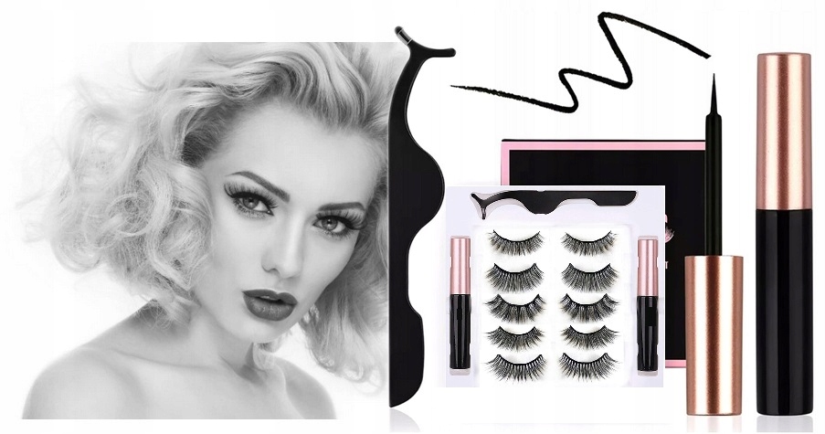 5x ORYGINALNE rzęsy magnetyczne DŁUGIE pęseta +2 eyeliner + box ZESTAW RZĘS