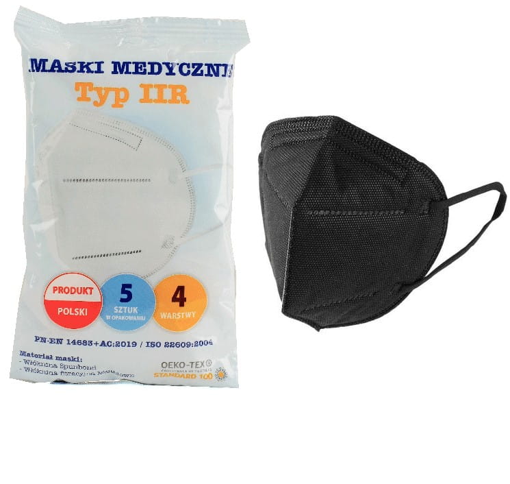 5x ПОЛЬСЬКІ ЧОРНІ МАСКИ KN95 FFP2 ТИПУ IIR