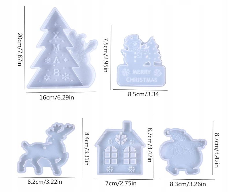 5x СИЛІКОНОВІ РІЗДВЯНІ ФОРМИ З ЕПОКСИДНОЇ СМОЛИ, ВЕЛИКІ XL