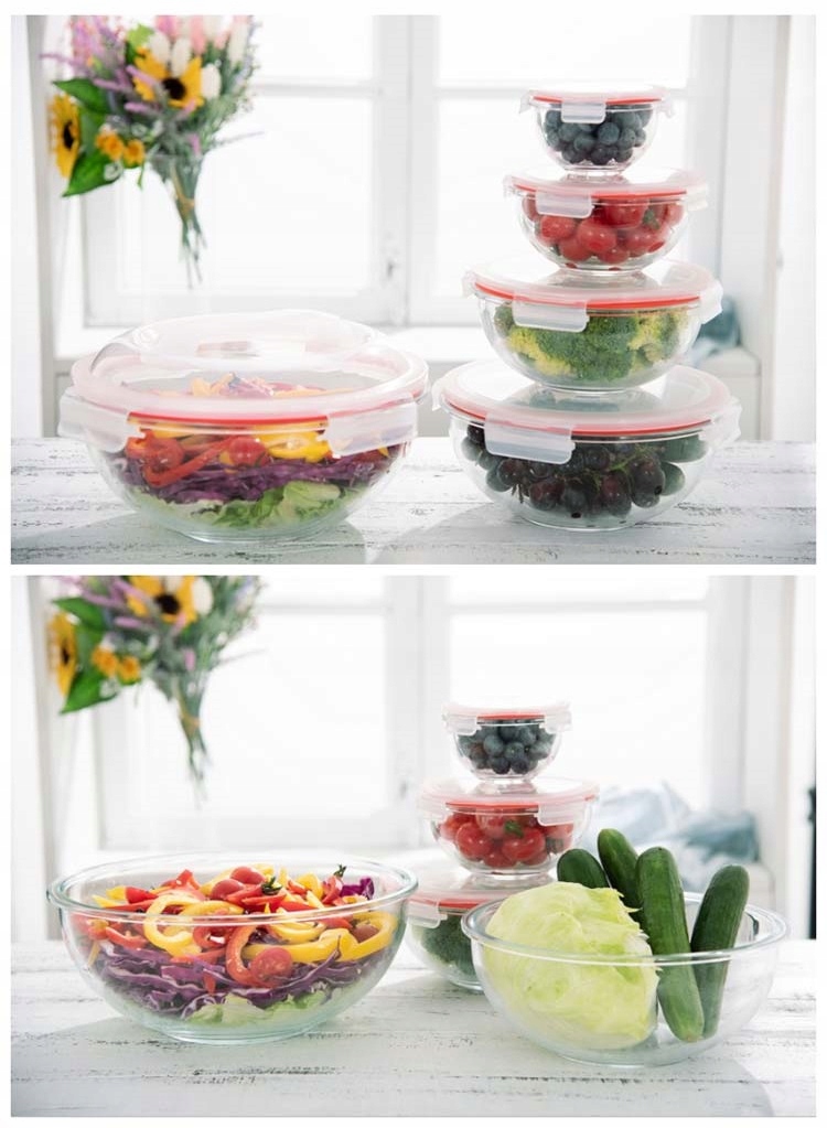 5x szklane pojemniki miski z pokrywką na żywność szkło hartowane PF-905