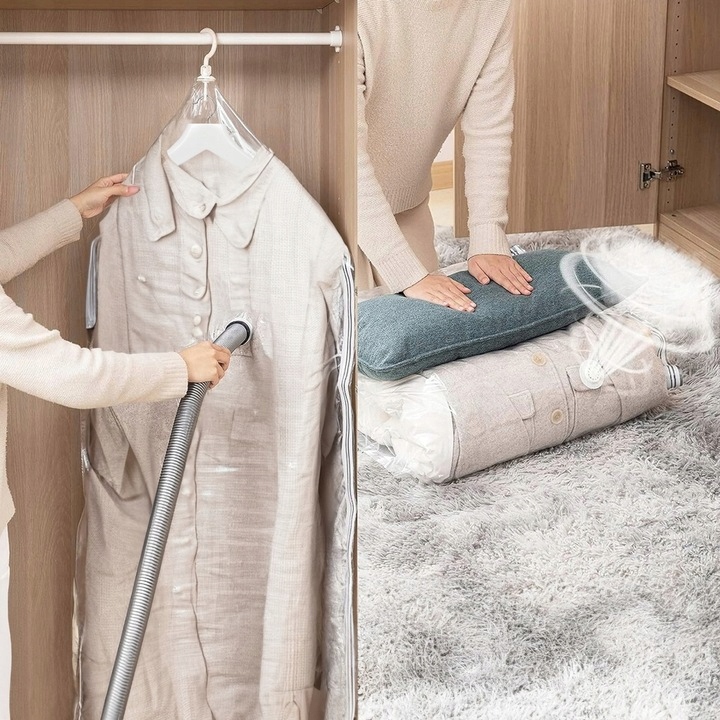 Вакуумные пакеты — практичное и простое решение, которое позволит герметично упаковать одежду и сжать ее объем до 80% за счет удаления из нее лишнего воздуха с помощью пылесос.