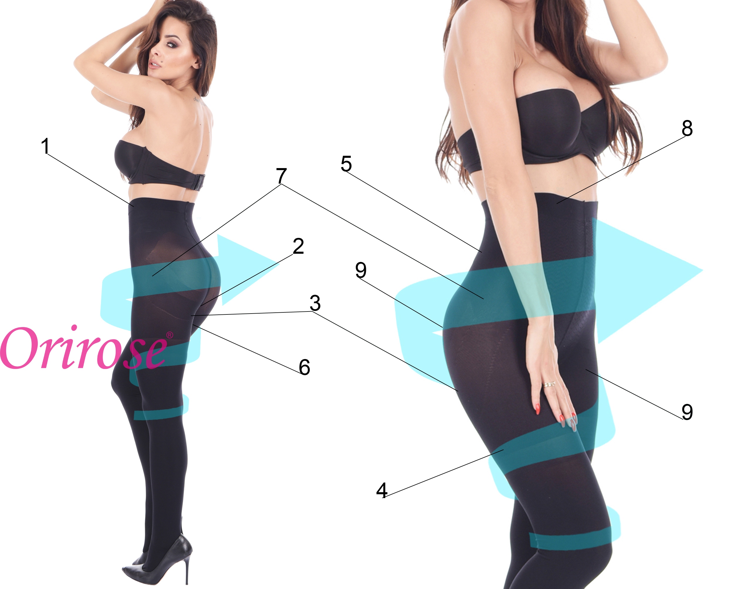 1) Колготки пуш-ап с корсетом высокой посадки от Orirose изготовлены из мягкой и шелковистой микрофибры на основе полиамида и эластана с высокой устойчивостью к растяжению. Толщина 70 ден.