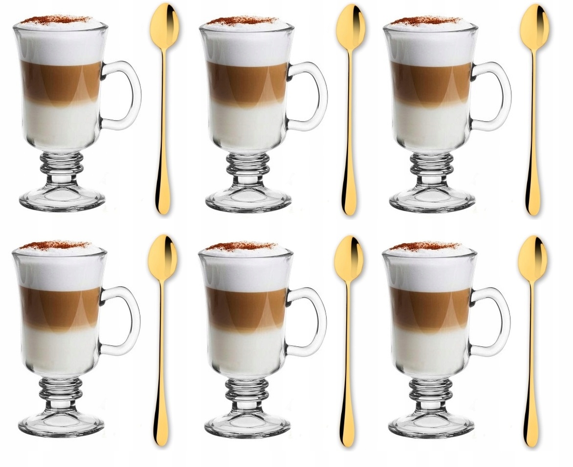 6+6 ВИСОКИХ СТАКІВ ДЛЯ КАВИ Latte Irish GOLD ЛОЖКИ довгі ПОДАРУНОЧНИЙ ХІТ