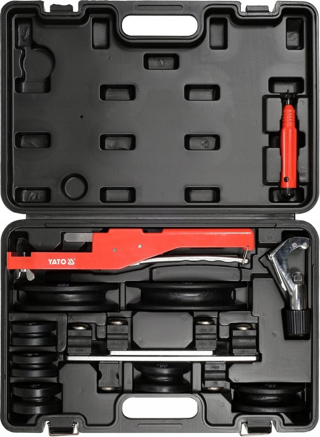 - Комплект В комплекте: трубогибочная матрица x7, труборез O3-28 мм, инструмент для снятия заусенцев.