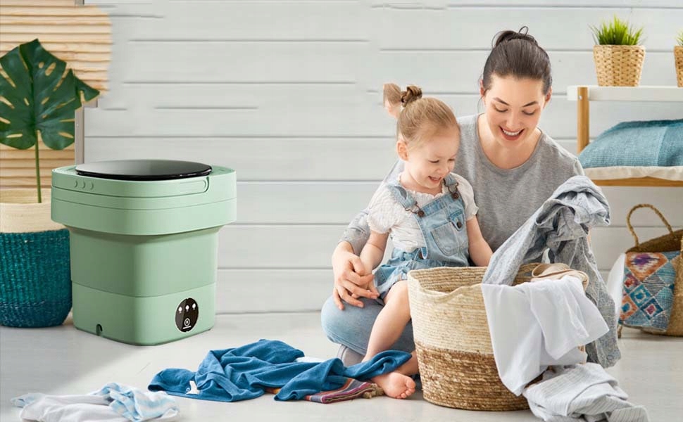 Эта портативная стиральная машина не занимает места и удобен в хранении, легко помещается между полками или под кроватью, не занимая слишком много места в доме. Также подходит для ношения во время путешествий или проживания в отелях.