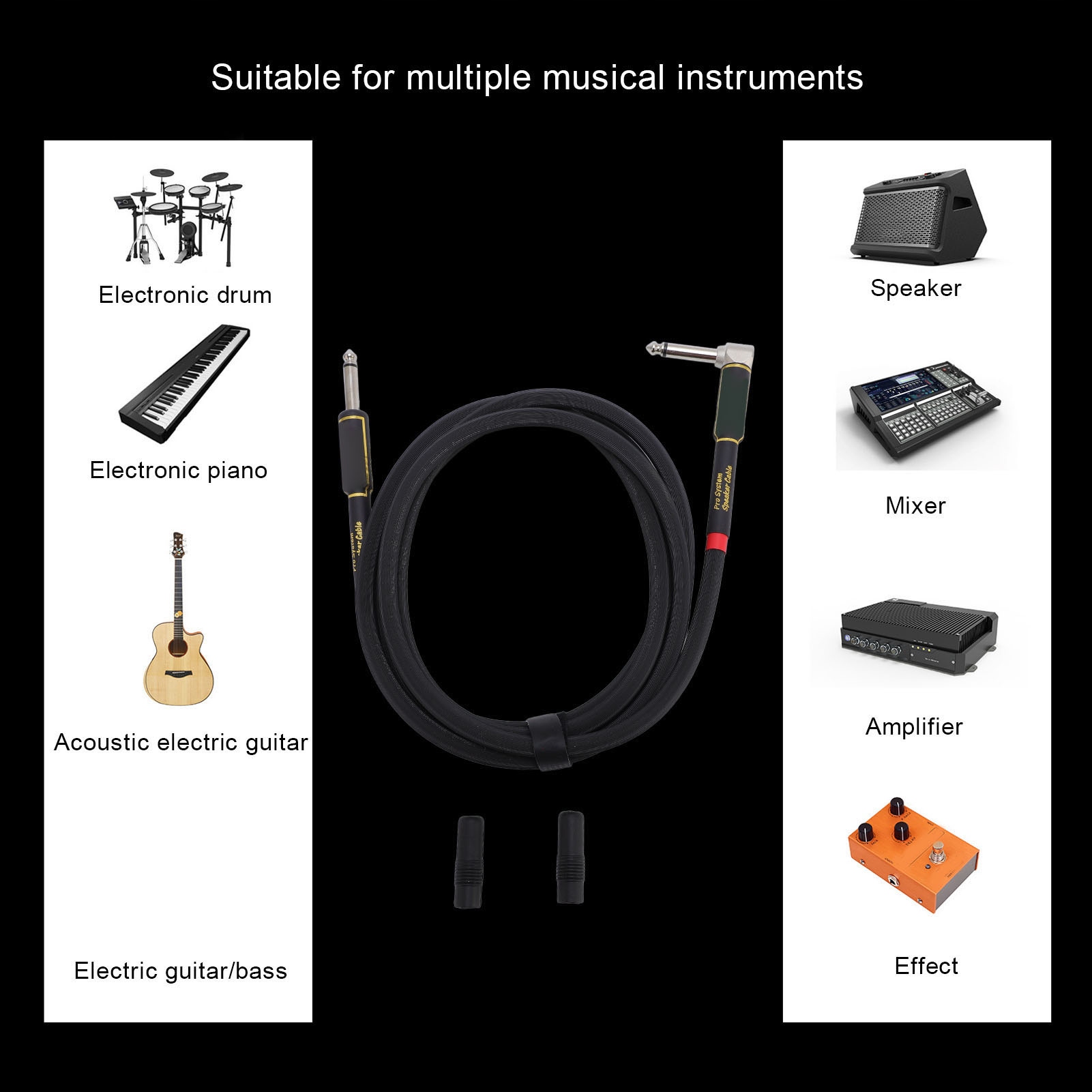 1. [Гитарный кабель 6,6 фута] Гитарный кабель имеет длину 2 м (6,6 фута) и 6,35 мм (1/4 дюйма) с прямыми угловыми разъемами, гибкий, прочный, растягивается в противоположных направлениях и долговечный.