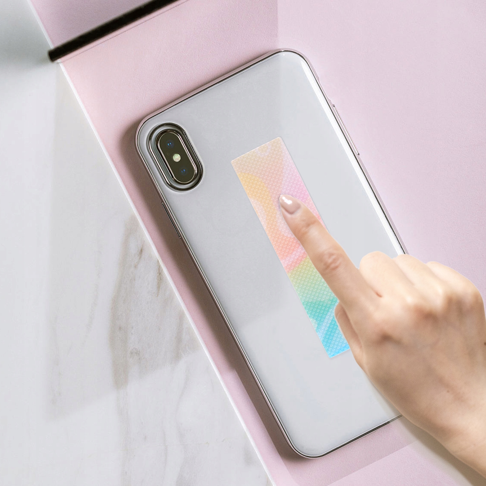 Самоклеящаяся конструкция, которую можно наклеить на стол в качестве украшения чехла для телефона.