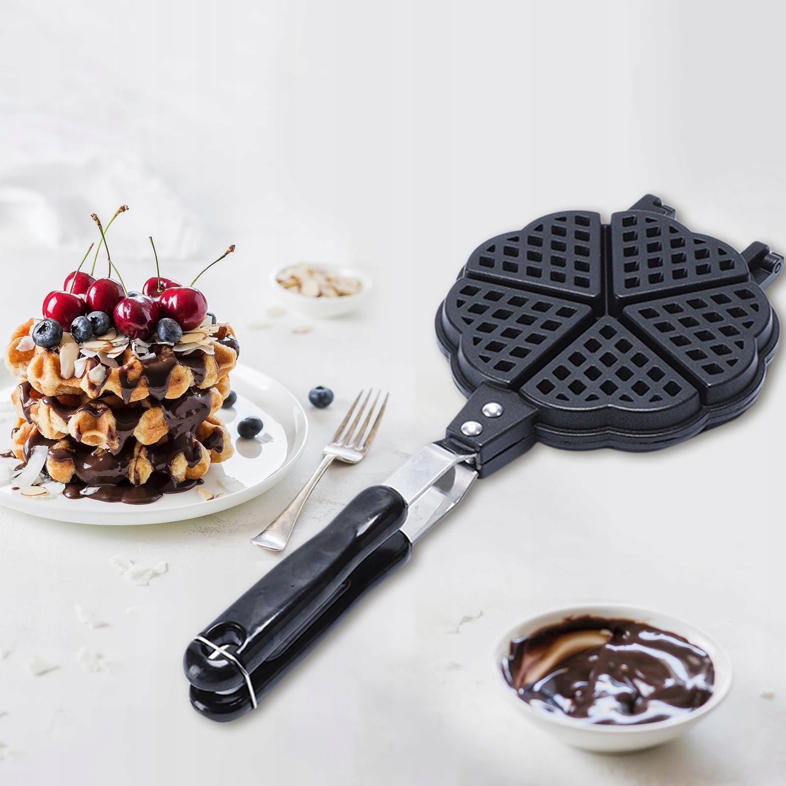 Вафельница: изготовлена из алюминиевого сплава, высокого качества, безопасна для пищевых продуктов, прочная и долговечная, съемная конструкция для легкой очистки