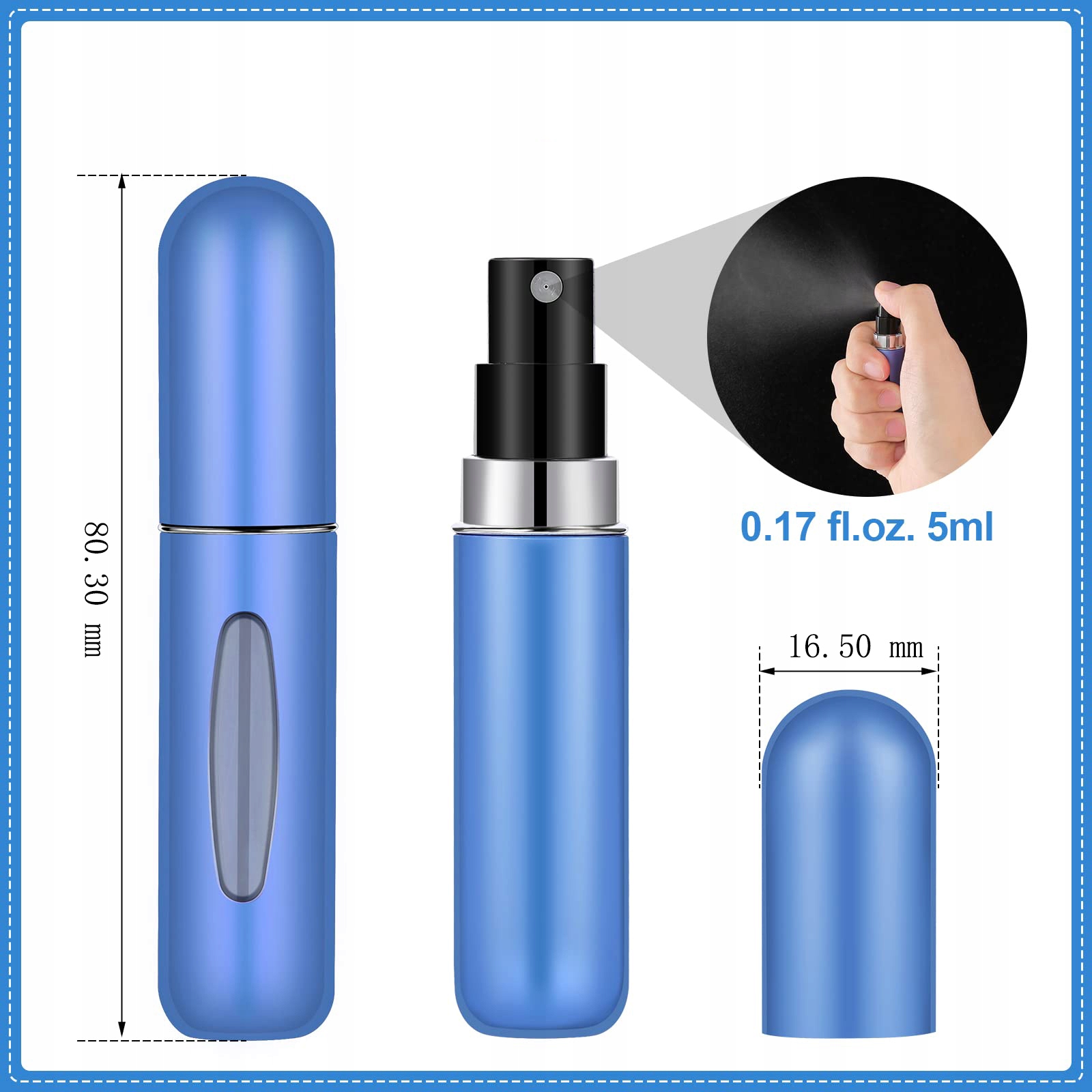 【ПУТЕШЕСТВЕННЫЕ ТУАЛЕТЫ】 Размер флаконов для духов Travel составляет 80,3 x 16,5 x 16,5 мм, а емкость – 5 мл. Легкий и прочный алюминиевый материал делает этот распылитель идеальным для размещения в сумочке или кармане. Легко и может использоваться практически со всеми стандартными флаконами для духов! Предметы первой необходимости для женщин. В дорожных распылителях должны быть дорожная косметика, дорожные флаконы для туалетных принадлежностей, мини-флаконы, гаджеты для женщин, парфюмерия для путешествий, многоразовые наполнители для чулок.