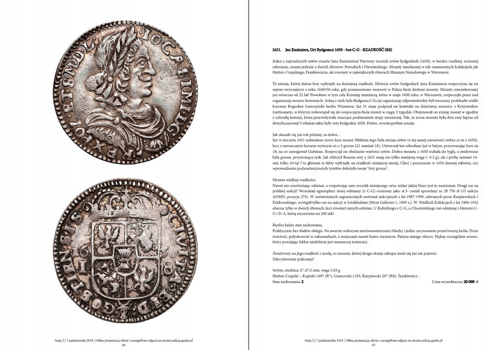 Предметом данного предложения является комплект из 2-х печатных каталогов осеннего аукциона Нумизматического кабинета Д. Марчиняка.