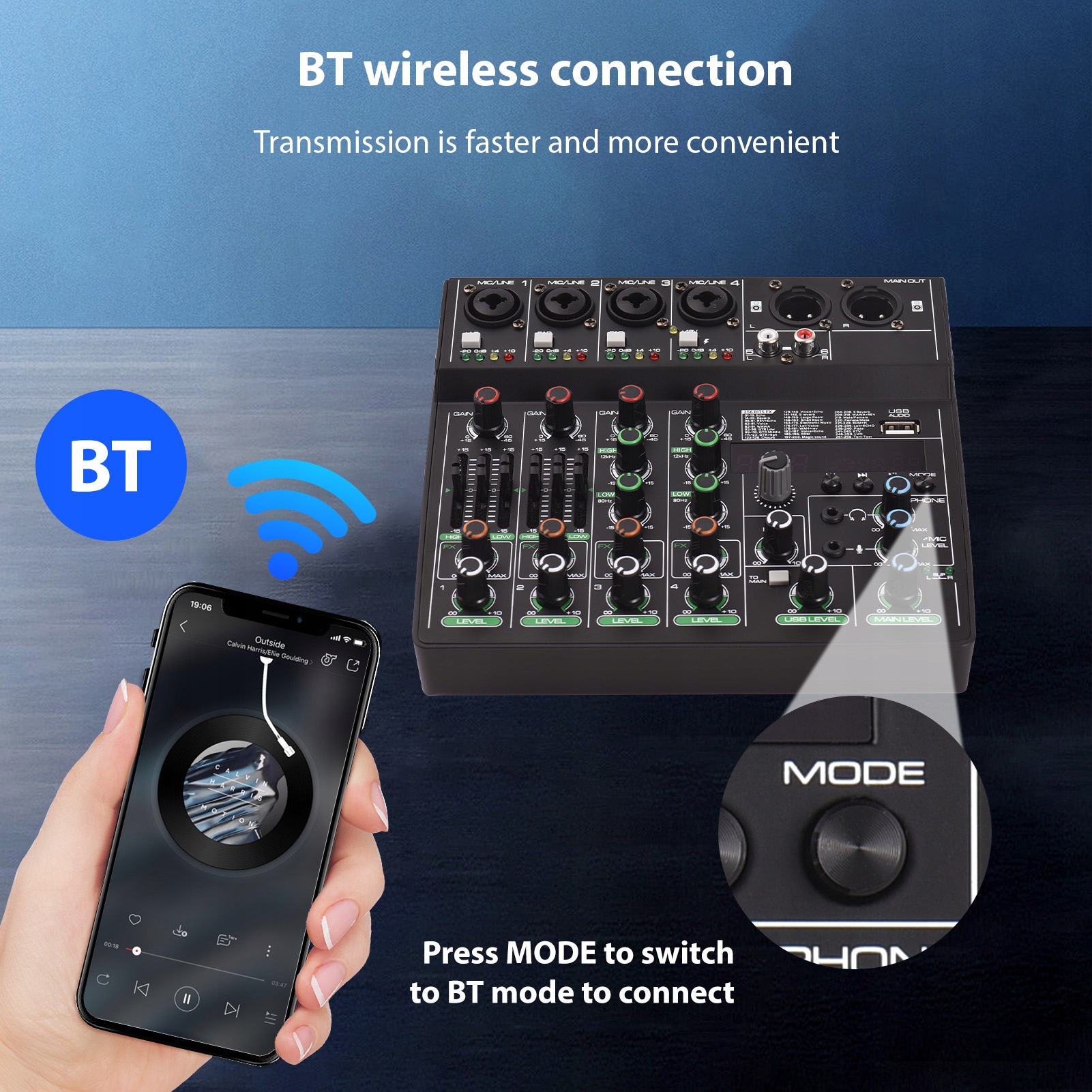 3. 【Совместимость BT и USB】: интегрированная функция BT позволяет вам беспроводным образом объединять смартфон или другие устройства с поддержкой BT с микшером, что позволяет воспроизводить проблемы и расширить возможности смешивания. Кроме того, запись USB -записи позволяет легко подключиться к компьютеру или MP3 -плеере для записи или воспроизведения.