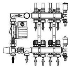 РАЗДЕЛИТЕЛЬ НА 6 КОНТУРОВ ДЛЯ ОТОПЛЕНИЯ ПОЛА С НАСОСНОЙ ГРУППОЙ IBO