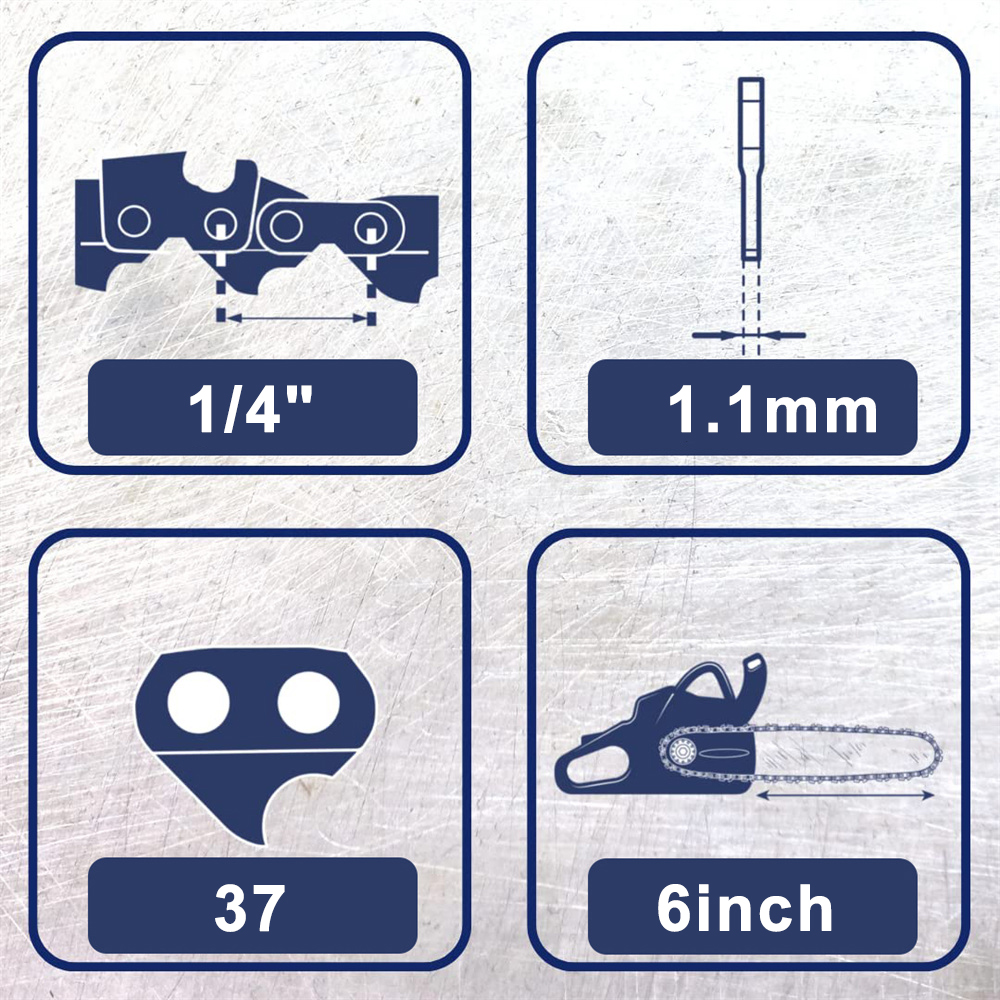 4 цепочки пила различных производителей для длины 6 -дюймового гида (15,24 см). Хорошая резкость и твердость, обеспечивая очень долгую жизнь.