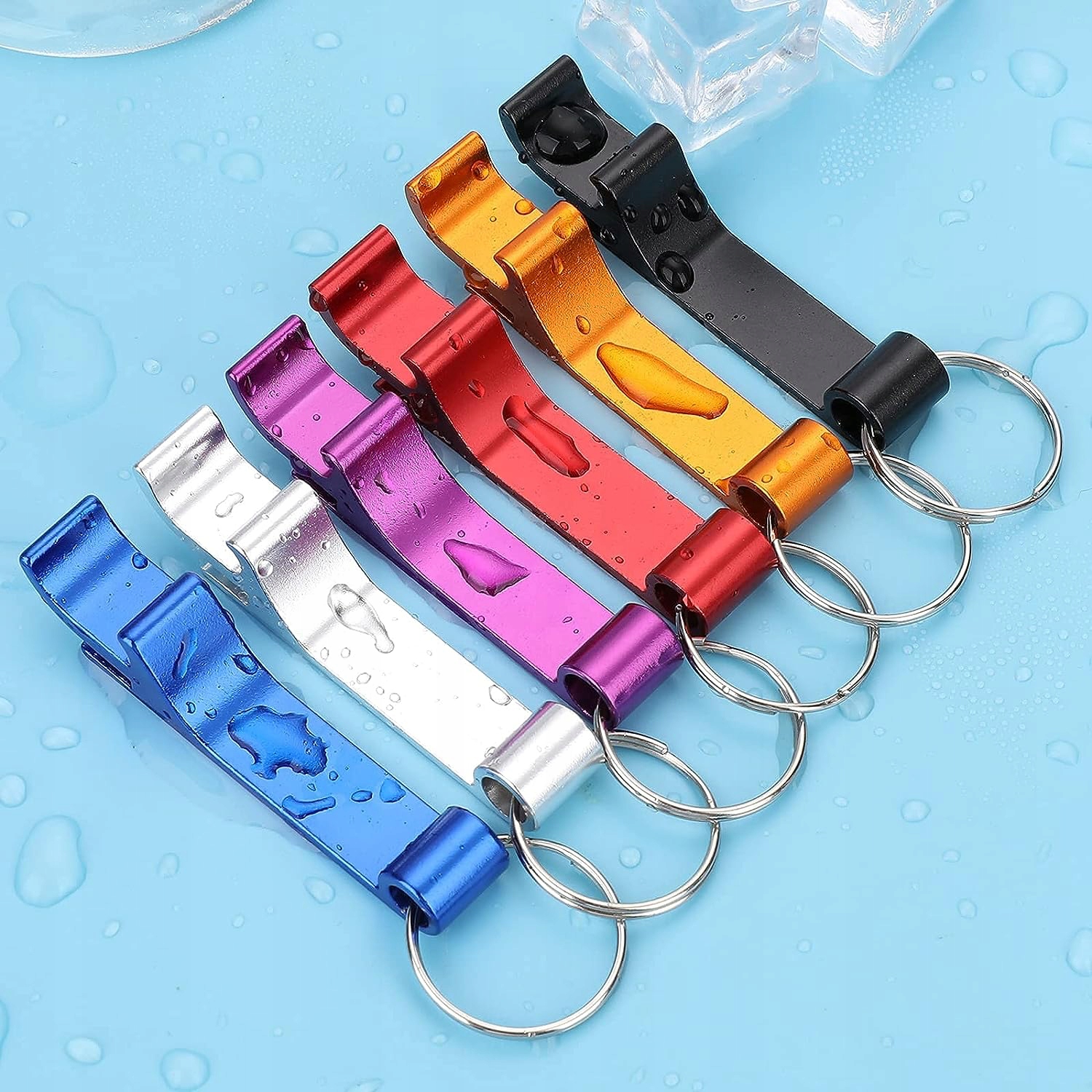 Мини-открывалка для бутылок изготовлена из прочного алюминия. Ее можно использовать не только как открывалку для бутылок, но и как брелок для ключей.
