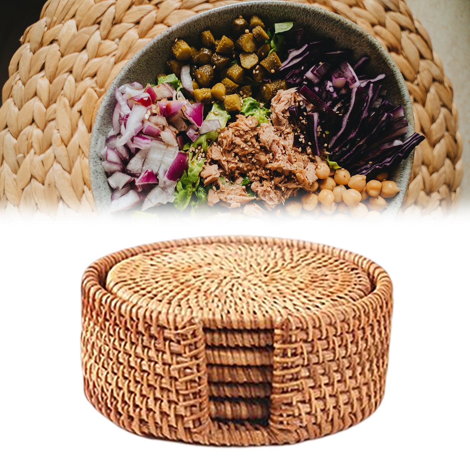 6 круглых подставок из ротанга, термостойкая тарелка, коврик, кухонные аксессуары, декор, диаметр 10 см