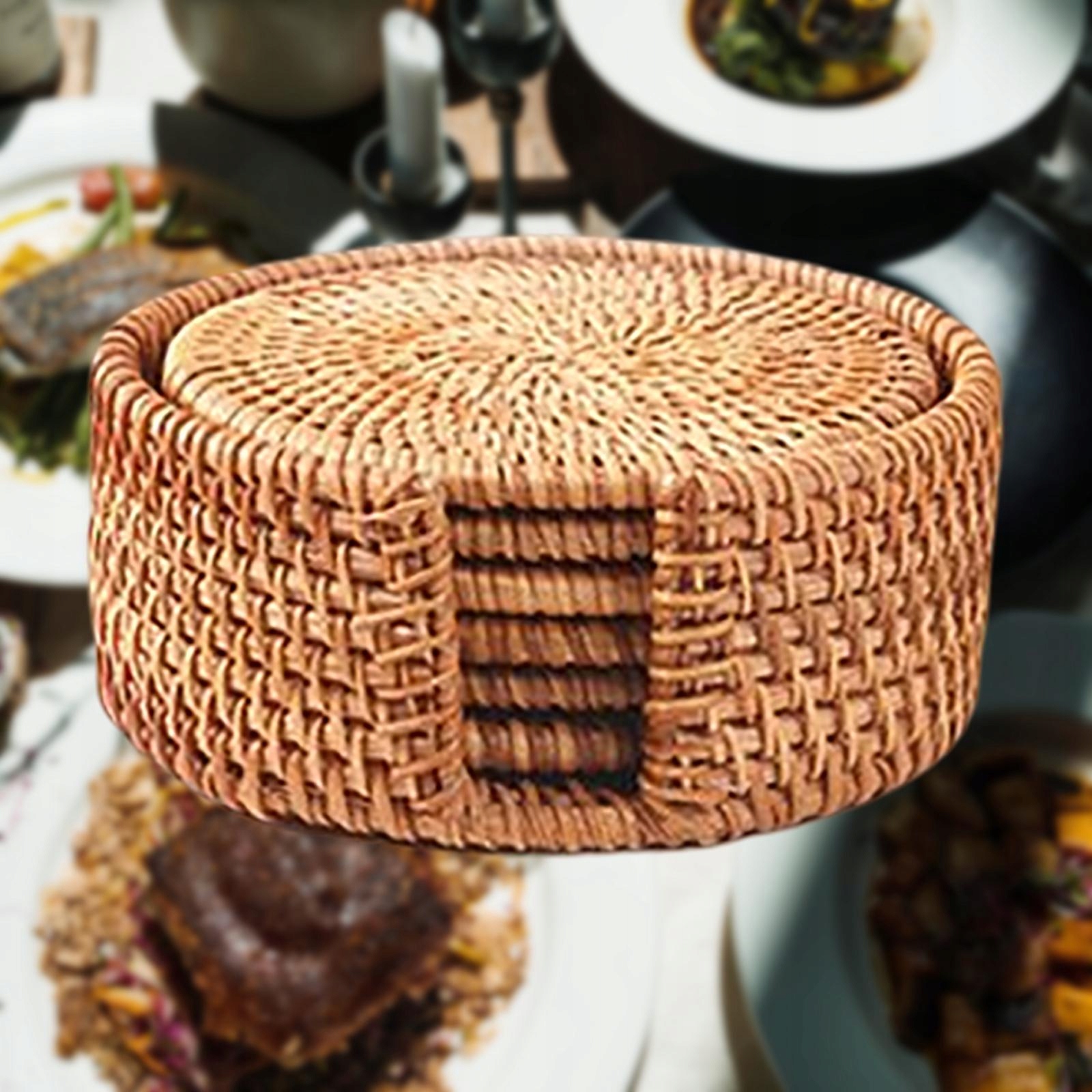 В комплект входит: В комплект входит 6 высококачественных подставок из натурального ротанга, которые можно компактно использовать дома, на кухне, на природе, в путешествиях, в туризме.