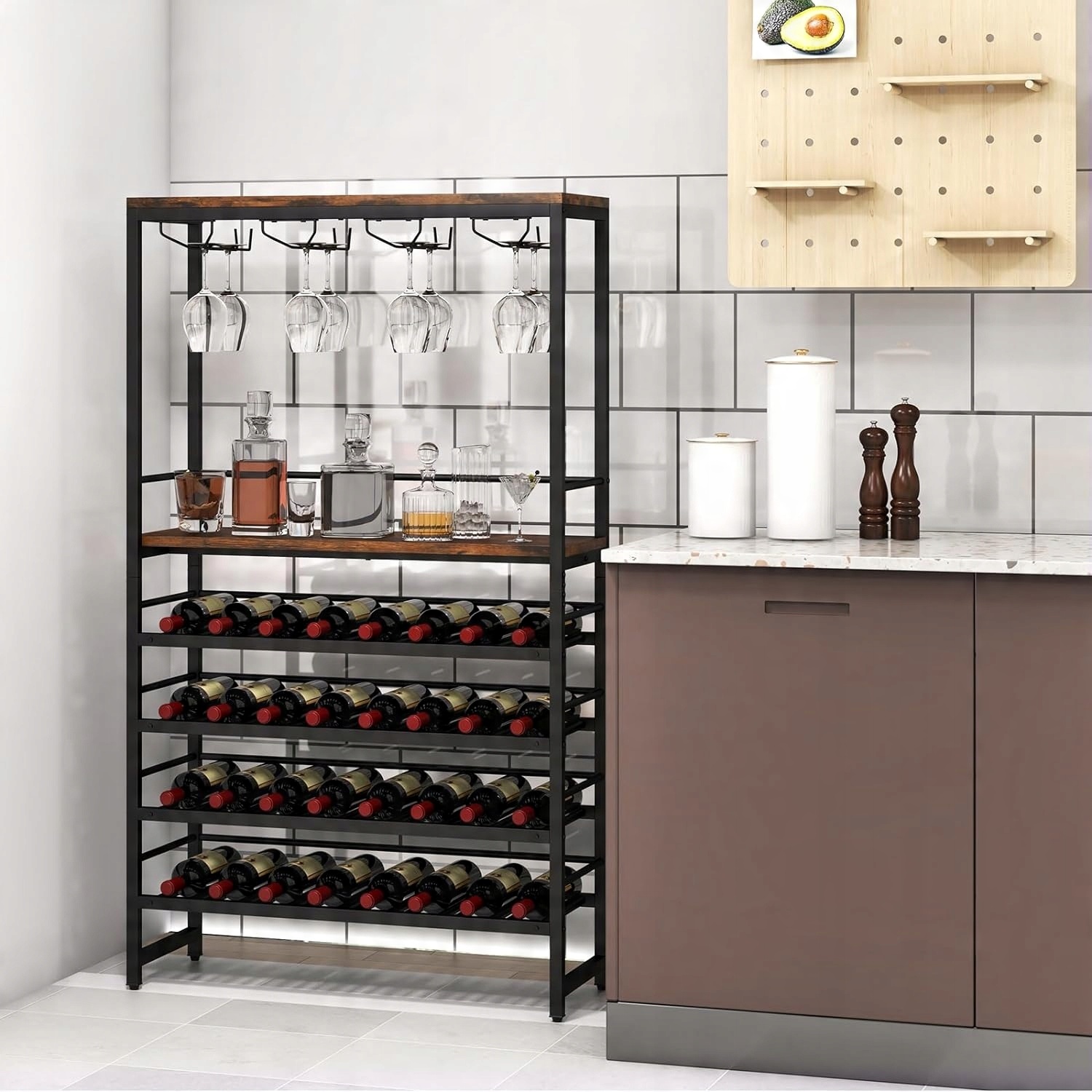 Подходит в качестве винного столика или полки для хранения на кухне, столовой и магазине.