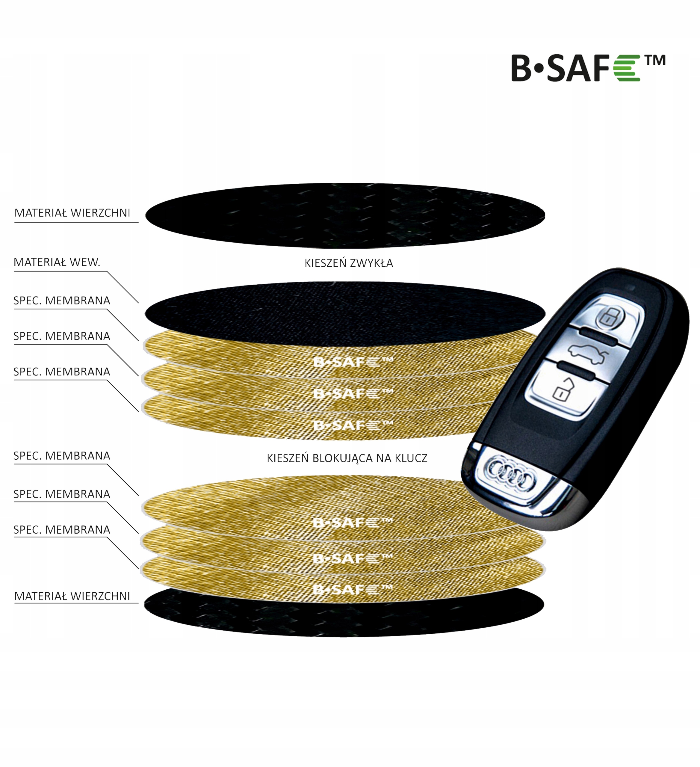 Хотя производители автомобилей обеспечивают свою безопасность, к сожалению, эксперименты и статистика противоречат этим сообщениям. Так стоит ли отказываться от покупки современного автомобиля с системой Keyless? Точно нет. Давайте пользоваться технологическими удобствами, но делать это с умом. Осознавая риск, попробуем его устранить. Что именно нам следует делать? Мы можем держать машину на виду или купить чехол, защищающий ключи от машины без ключа, что кажется наиболее практичным и разумным решением. Чехол для бесключевого доступа — лучшая защита вашего ключа для бесключевого доступа. Благодаря специальной ТРОЙНОЙ МЕМБРАНЕ он блокирует беспроводные RFID, BLUETOOTH, GSM, WIFI. , сигналы NFE и LTE, защищающие ключи от машины перед сканированием. Если у вас бесключевая система, вам следует дополнительно позаботиться о ее безопасности.