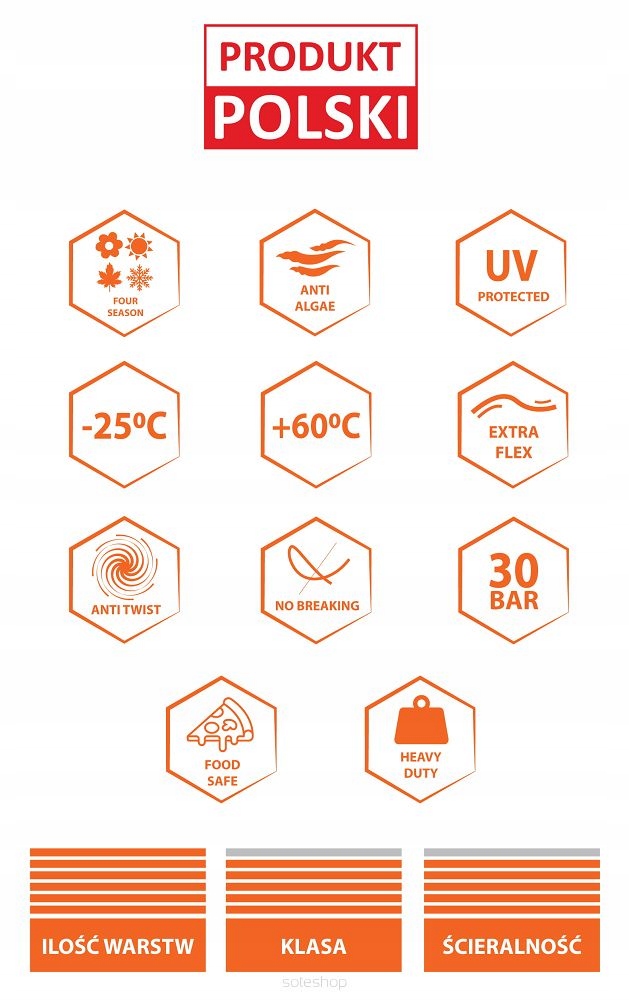 Садовый шланг высочайшего качества, произведенный в Польше, отличается очень хорошим материалом, устойчивым к солнечному свету, низким и высоким температурам.