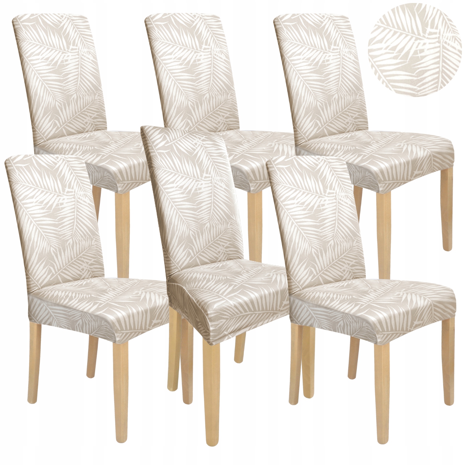 6 ШТ ЧОХЛИ ЧОХОЛ НА СТІЛЕЦЬ ЛИСТЯ ПАЛЬМИ СІРИЙ БЕЖЕВИЙ ВІЗЕРУНКИ ЕЛАСТИЧНИЙ