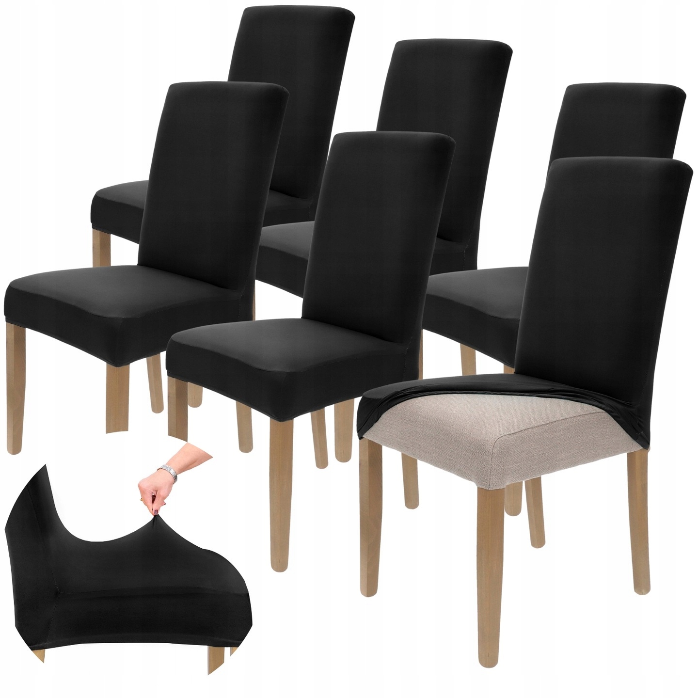 Чехлы для стульев, 6 шт., ЧЕРНЫЕ ГЛАДКИЕ эластичные толстые чехлы