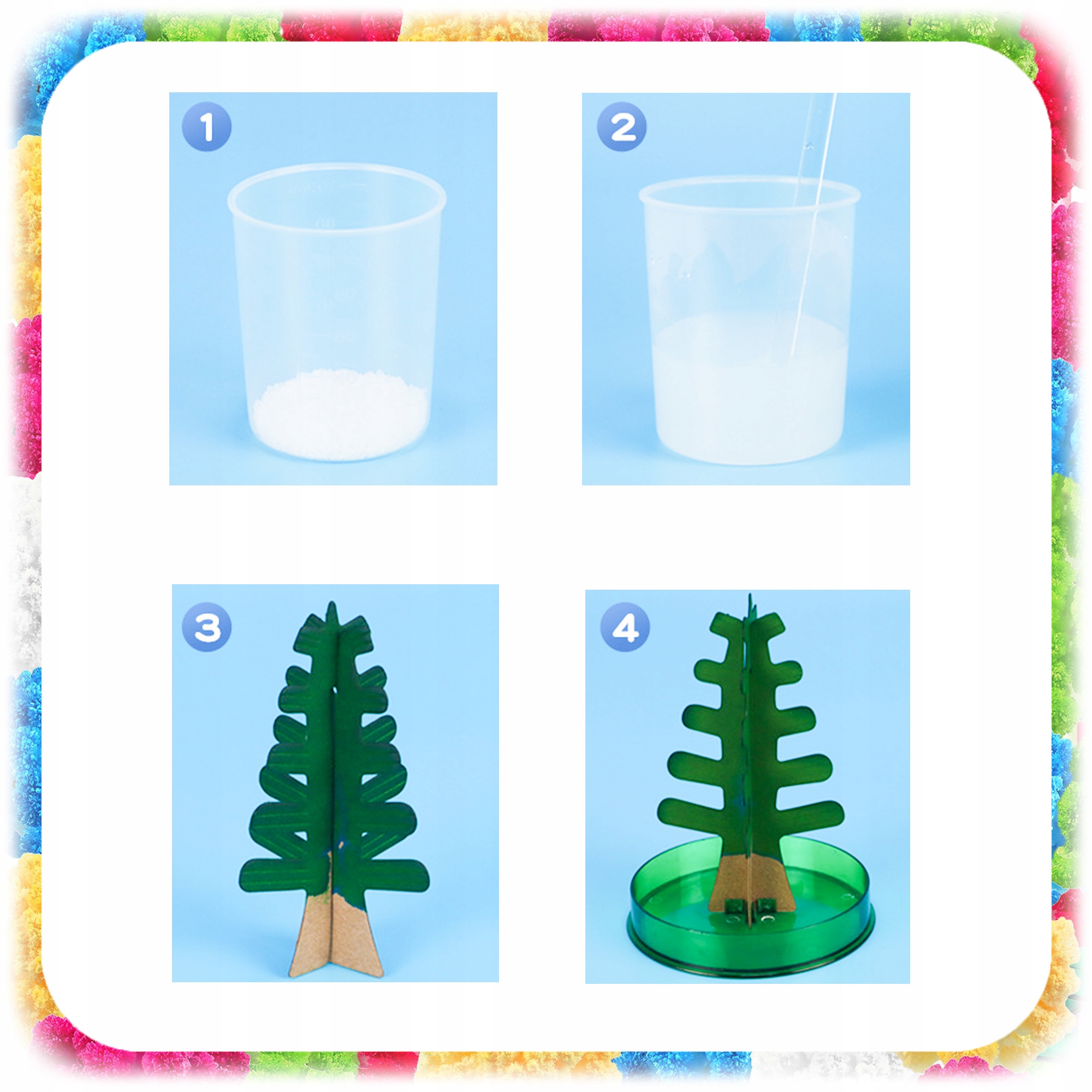 ✔ В наборе вы найдете 6 красочных бумажных деревьев b>, которые после затопления специальным решением начнут «цветение» с кристаллами в течение 24 часов!