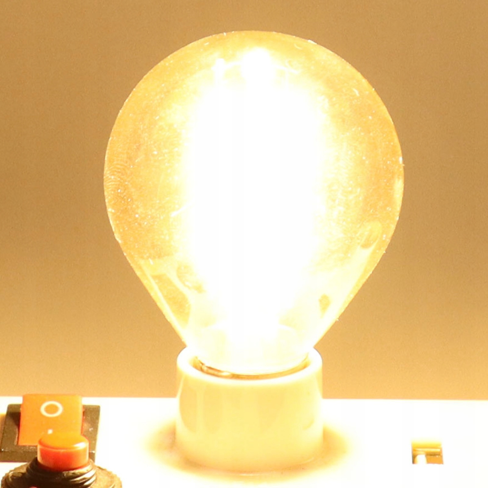 1. Светодиодная лампа модели G45, потребляемая мощность 4 Вт, высокая яркость, теплый белый 2700 К, яркость эквивалентна лампе мощностью 40 Вт, угол свечения 360°.