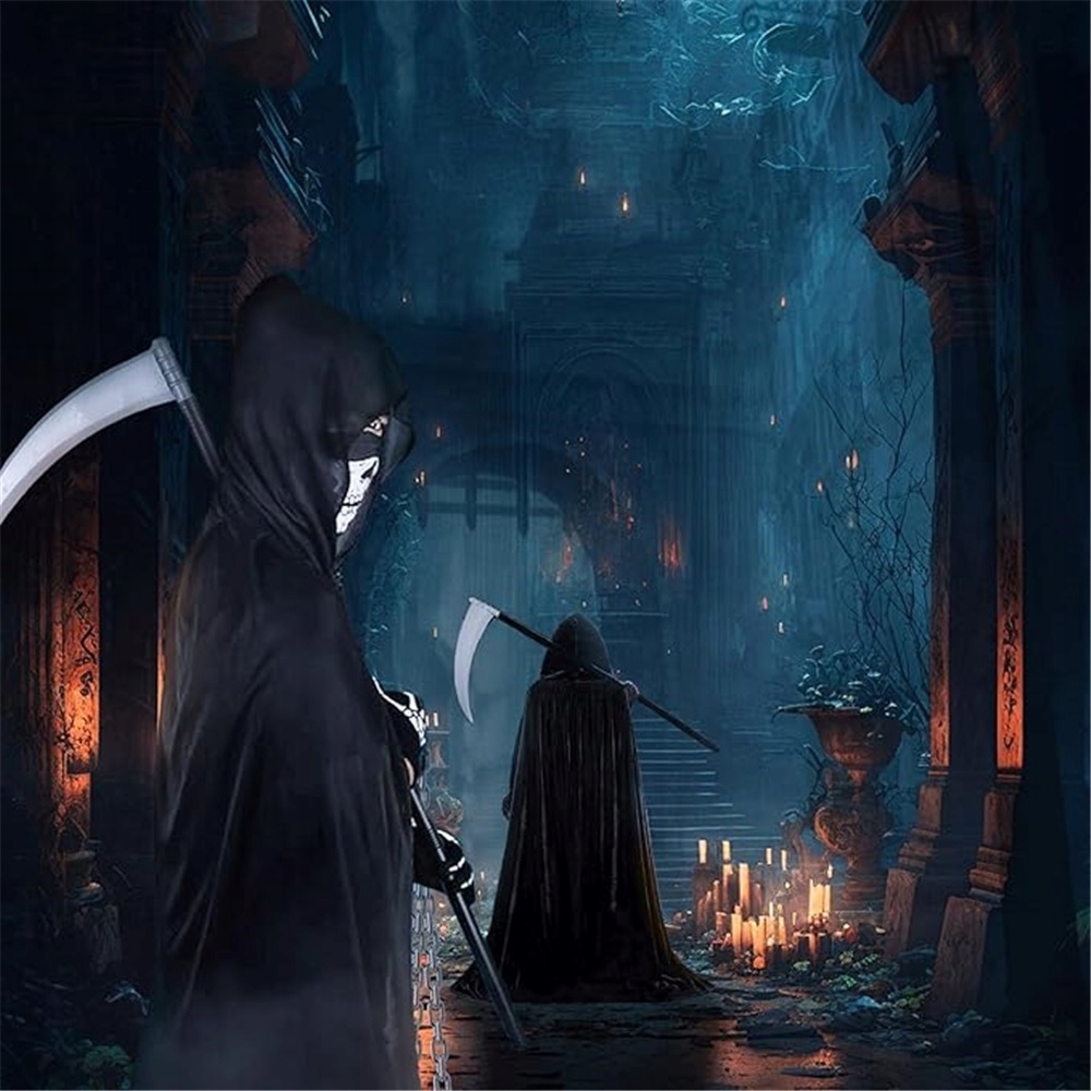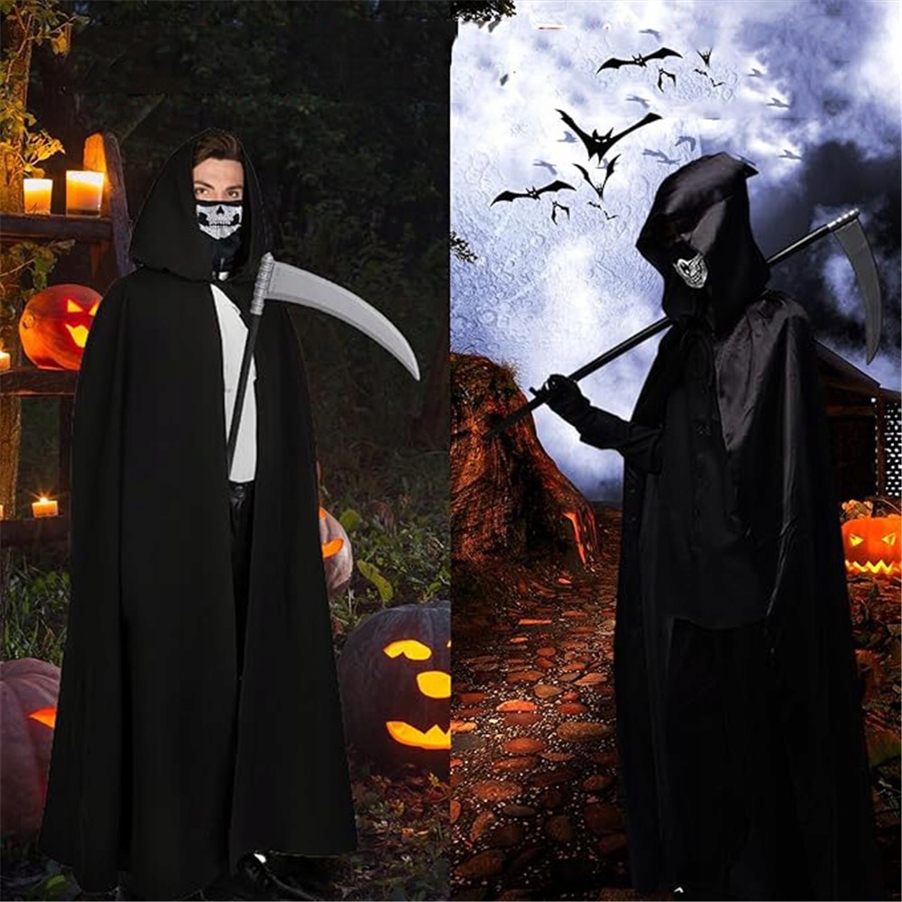 💀💀💀Классический дизайн: Этот мужской костюм Мрачного Жнеца на Хэллоуин имеет капюшон, который можно надевать или снимать для различных ролевых игр. Длинная накидка с большим капюшоном унисекс и подходит для различных ролей, таких как Мрачный Жнец, Ведьма, Колдун, Ситх, Вампир, Волшебник и многих других.