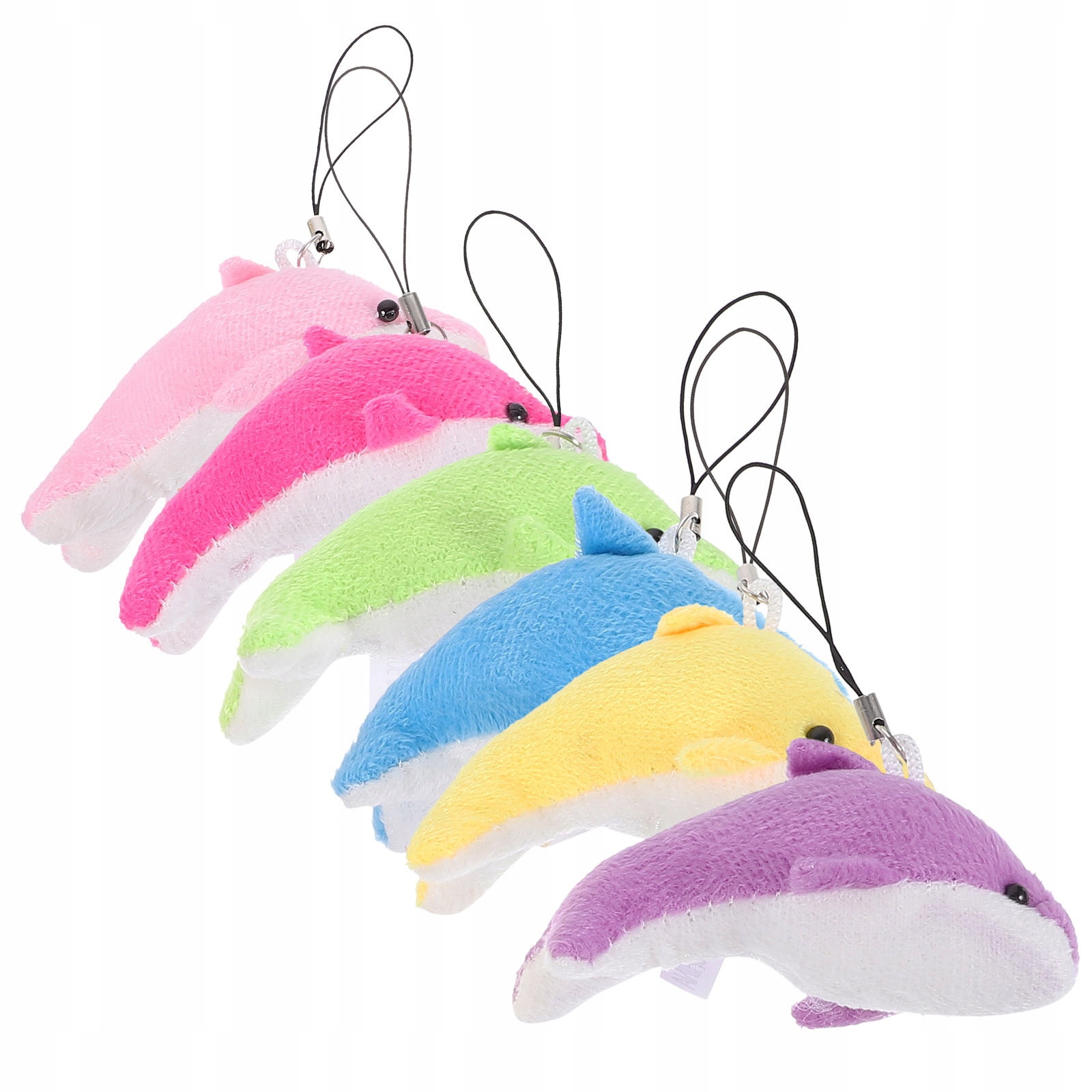 6 ШТ. ЦВЕТНЫХ ПЛЮШЕВЫХ БРЕЛОКОВ С ДЕЛЬФИНАМИ ДЛЯ ТЕЛЕФОНА И СУМКИ
