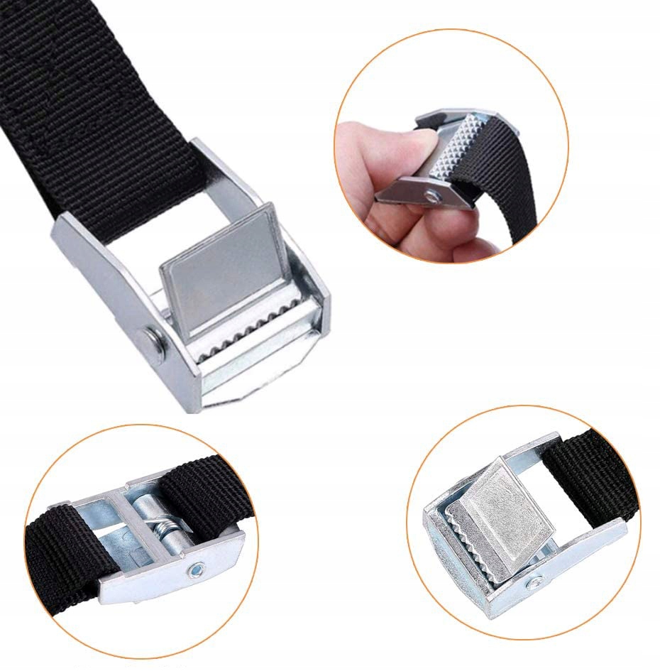 Поскольку кнопка находится на массивном закрытии металла, ее можно легко растянуть одной рукой, монтажные ремни с зажимом очень сильны, он может нести вес до 250 кг, идеально подходит для связывания и затягивания нагрузки.
