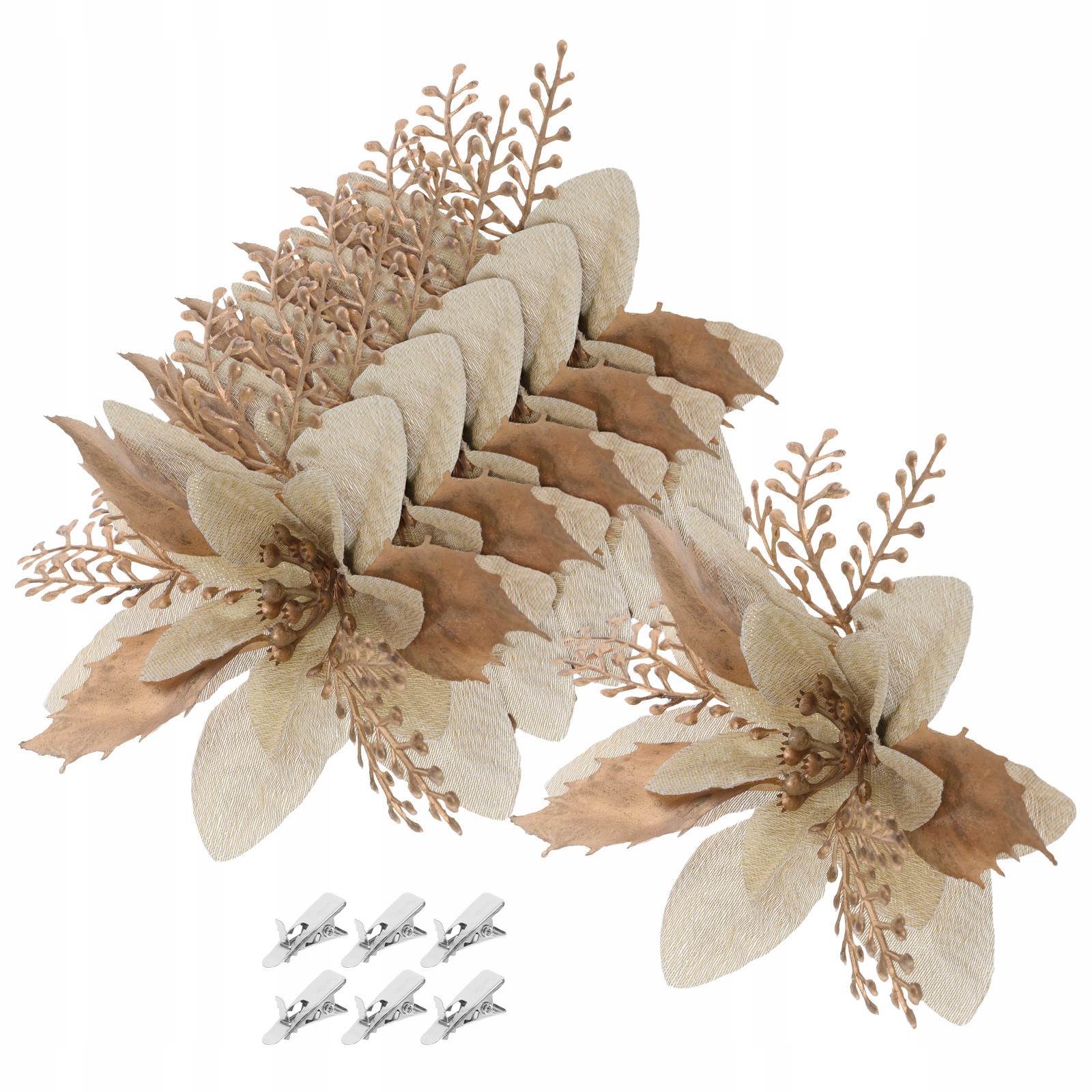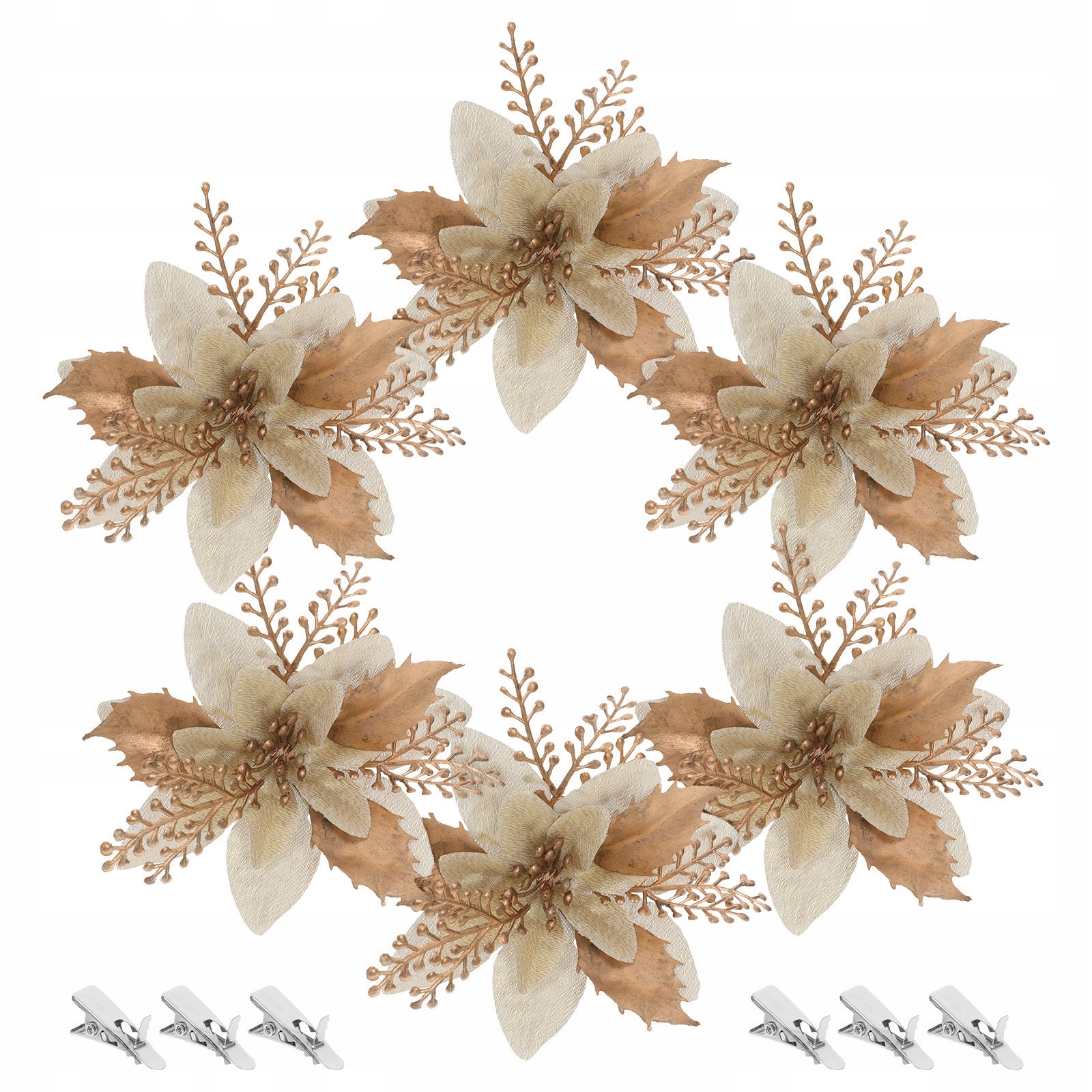 6 ШТ. РОЖДЕСТВЕНСКИЕ ЦВЕТЫ С БЛЕСКАМИ, УКРАШЕНИЯ ДЛЯ РОЖДЕСТВЕНСКОЙ ЕЛКИ