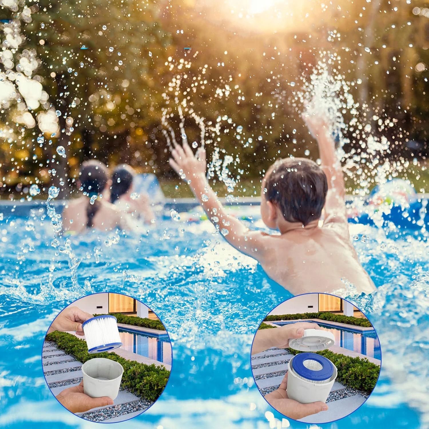 🏊♀ 【Сильная эффективность фильтрации】 благодаря инновационной технологии «блокировки грязи» Наши картриджи фильтров захватывают в три раза больше загрязняющих веществ, чем традиционные сети. Этот фильтр бассейна вставляет эффективно удаляет волосы, листья, пыль, мусор, песок и т. Д., Таким образом, вы можете насладиться безопасной и здоровой ванной с гидромассаж.