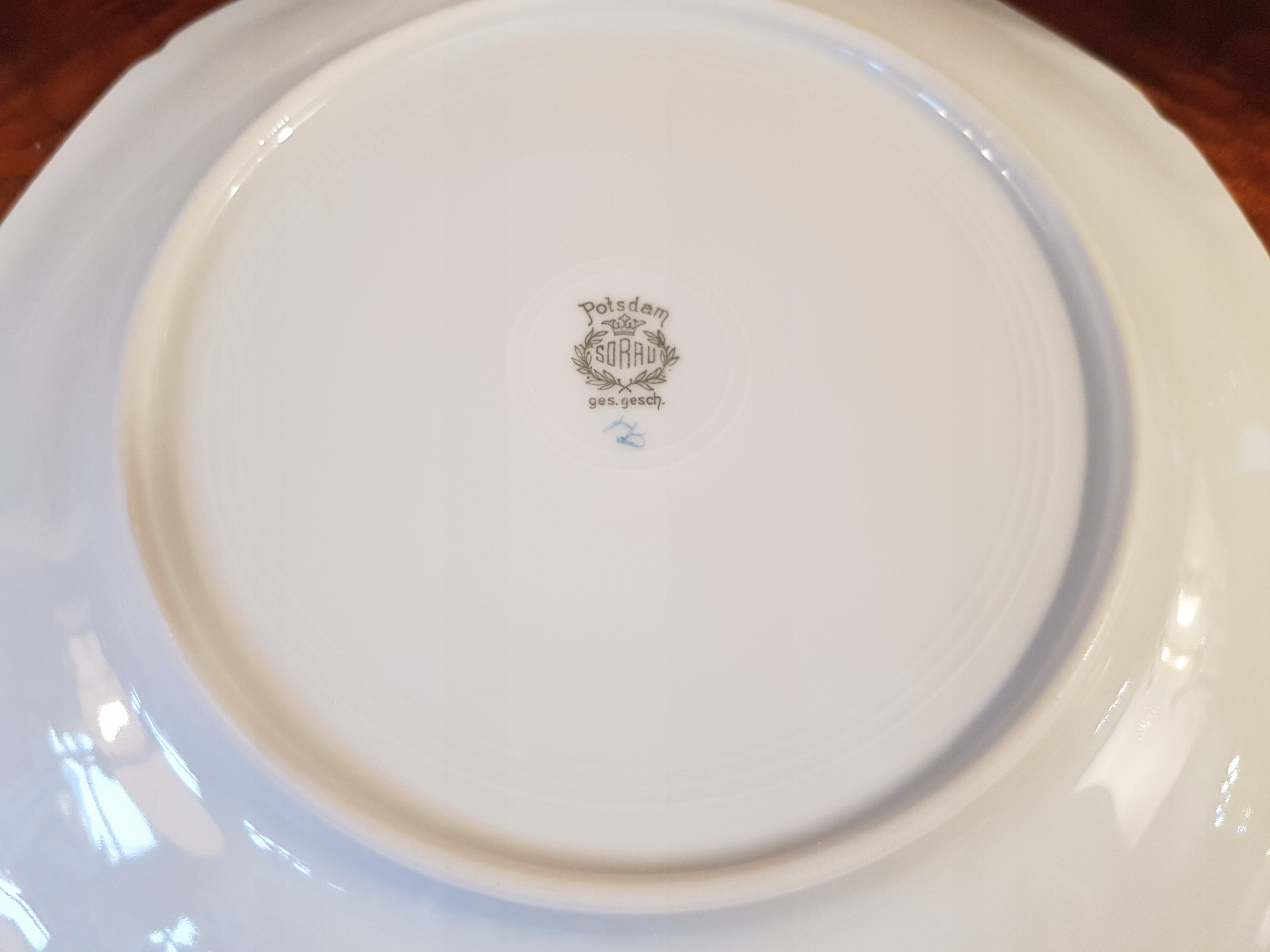 Предмет аукциона — 6 обеденных тарелок «Сорау» модели «Потсдам».