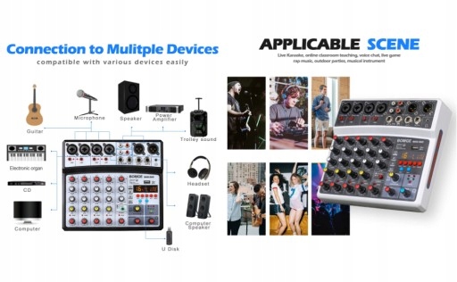 ✅ Этот микшер позволяет пользователям передавать по беспроводной сети музыку с пэдов, телефонов и компьютеров для микширования(аккомпанемент). В то же время он имеет встроенные элементы управления, такие как воспроизведение, пауза, переключение песен, регулировка громкости и другие функции.