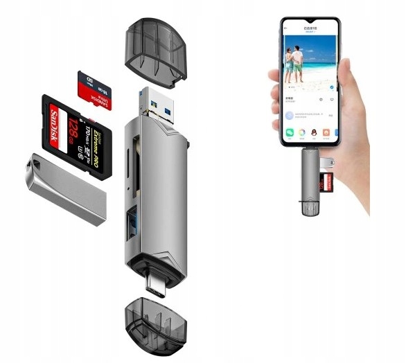 6-в-1 АДАПТЕР КАРТРИДЕР USB 3.0 USB-C SD microSD SDHC TF PLUG&PLAY Срібний