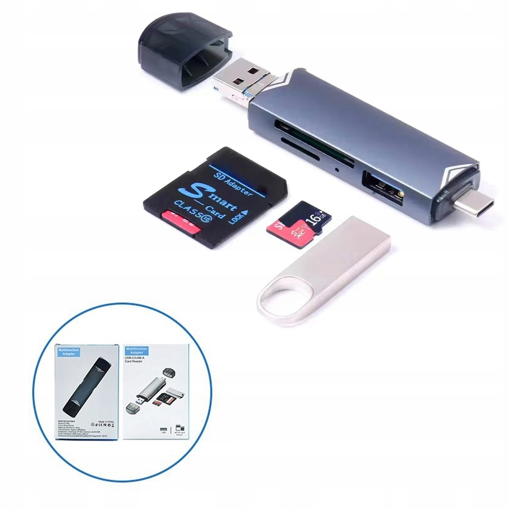 6-в-1 АДАПТЕР КАРТРИДЕР USB 3.0 USB-C SD microSD SDHC TF PLUG&PLAY СІРИЙ