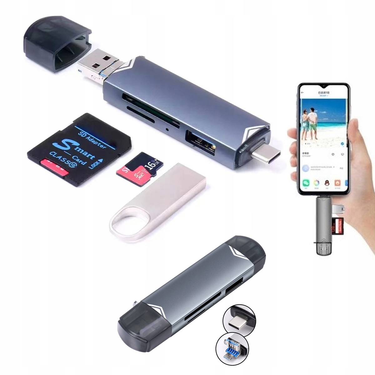 6-в-1 АДАПТЕР КАРТРИДЕР USB 3.0 USB-C SD microSD SDHC TF PLUG&PLAY СІРИЙ
