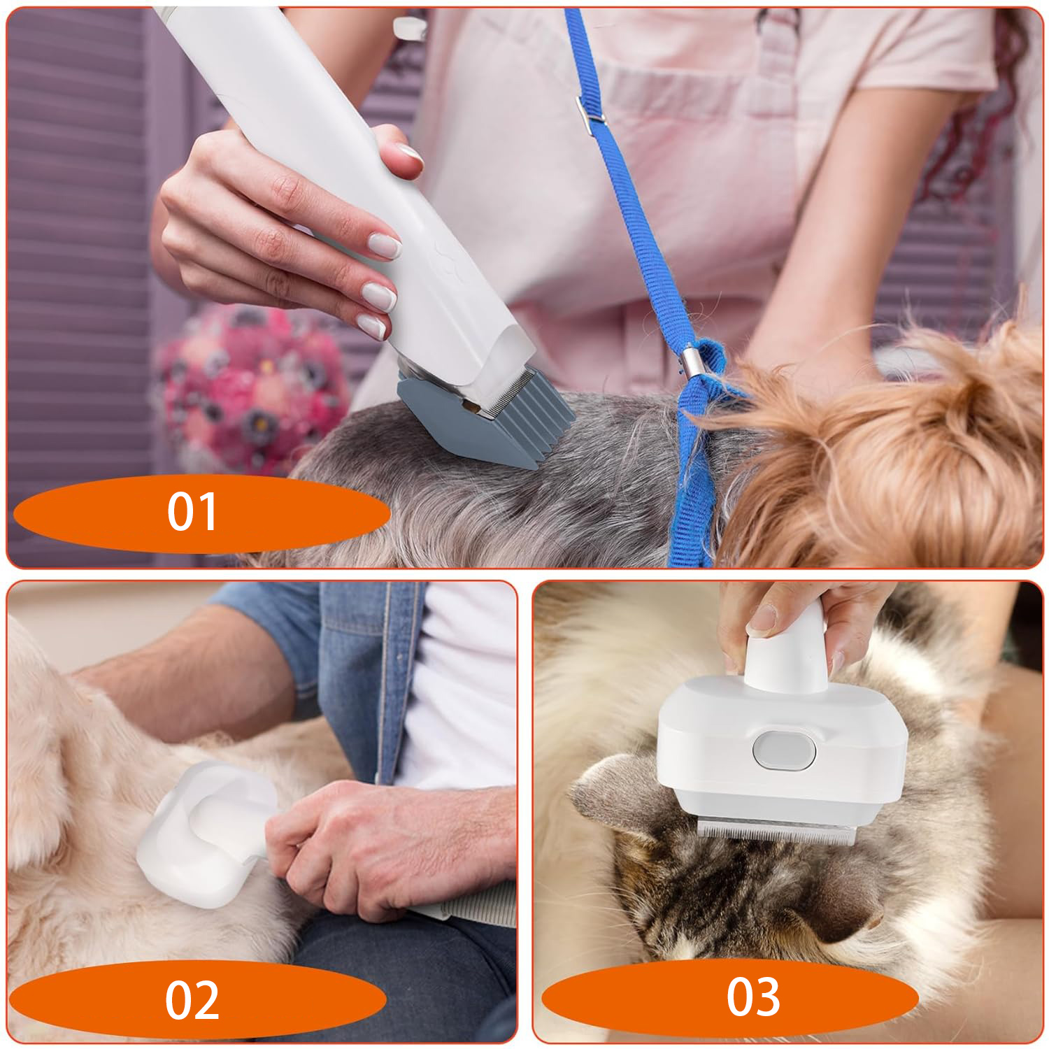 🟡 Пылесос для шерсти домашних животных 6 в 1: В комплект для ухода за домашними животными входит проверенный набор инструментов: электрическая машинка для стрижки, триммер, расческа для ухода и средство для удаления линьки, щетка для чистки и щетка для ухода, а также насадка-насадка. Функции стрижки и уборки в одном, меньше беспорядка и более эффективно.