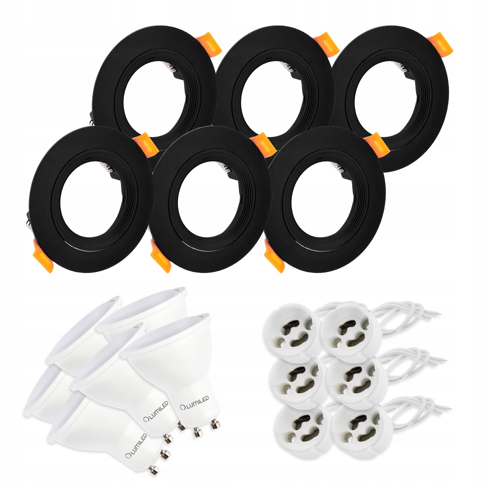 Набор из 6 галогенных светильников VENTUS черного цвета, круглых, встраиваемых + 6 светодиодных ламп GU10 6 Вт, 120° Lumiled + 6 цоколей