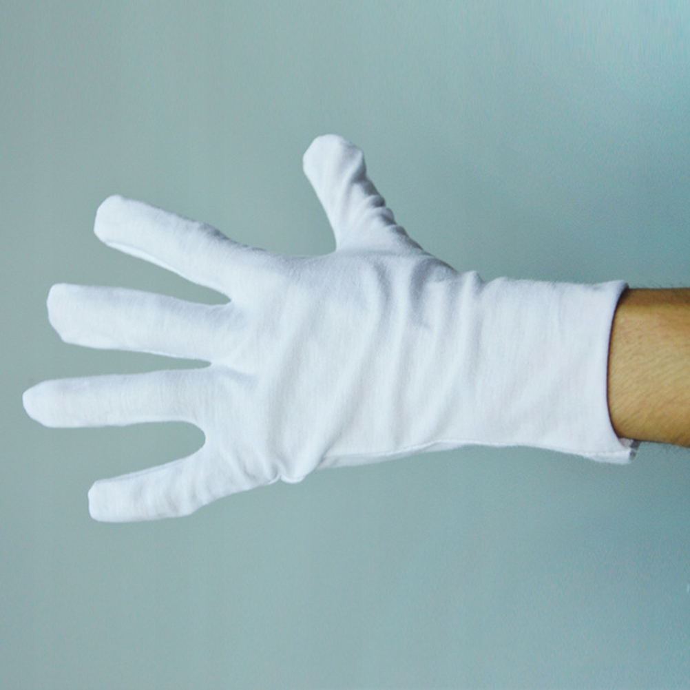 Это набор из 6 белых хлопковых перчаток. Идеально подходит для переноски фольги, слайдов или других предметов, для которых важна защита от пыли и пыли. Это удобная хлопчатобумажная перчатка, которую легко растянуть и подогнать под средний размер.