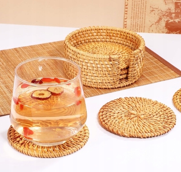 Легко чистить: гладкая поверхность из ротанга позволяет легко чистить эти подставки и подушечки, обеспечивая минимальный уход и сохраняя при этом привлекательный внешний вид.
